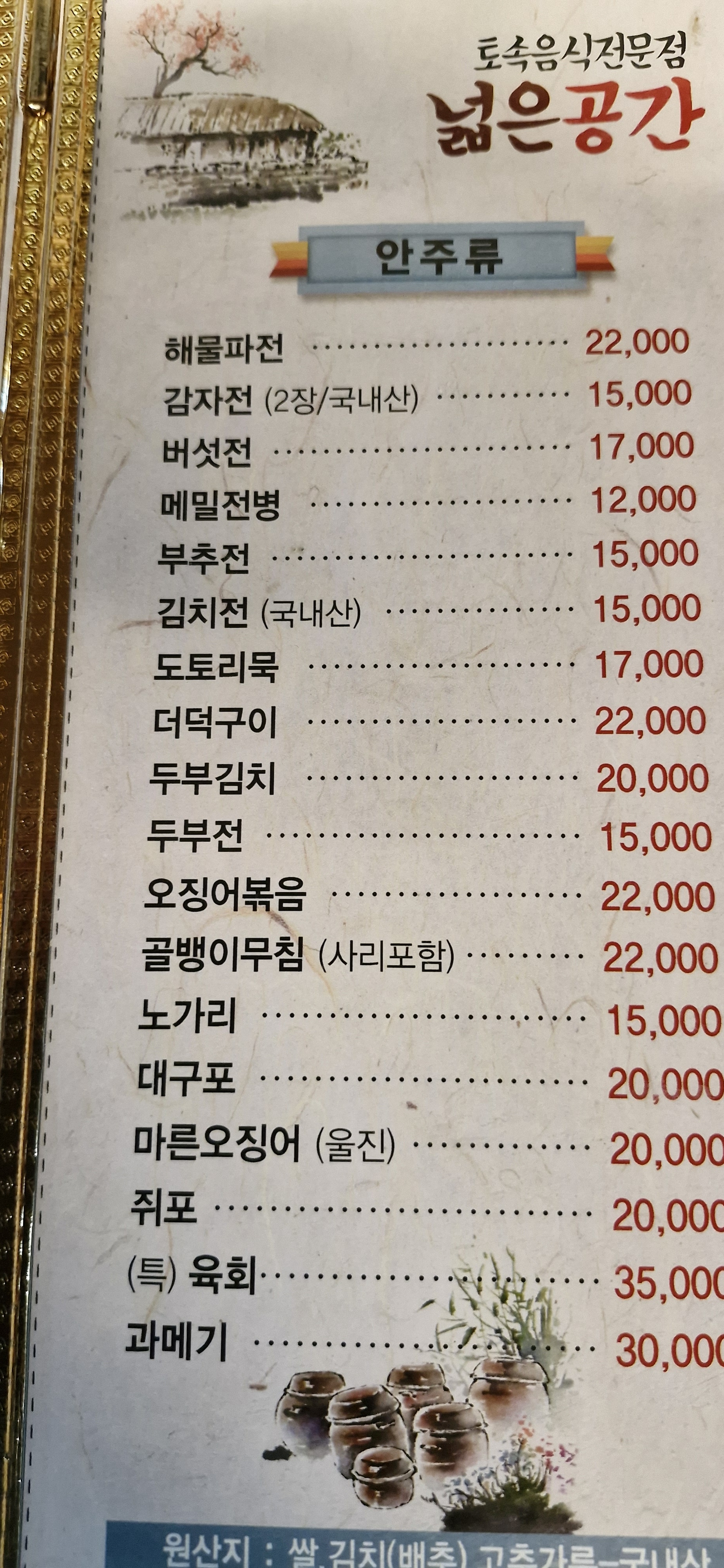 - 김치찌개(대) 30,000원