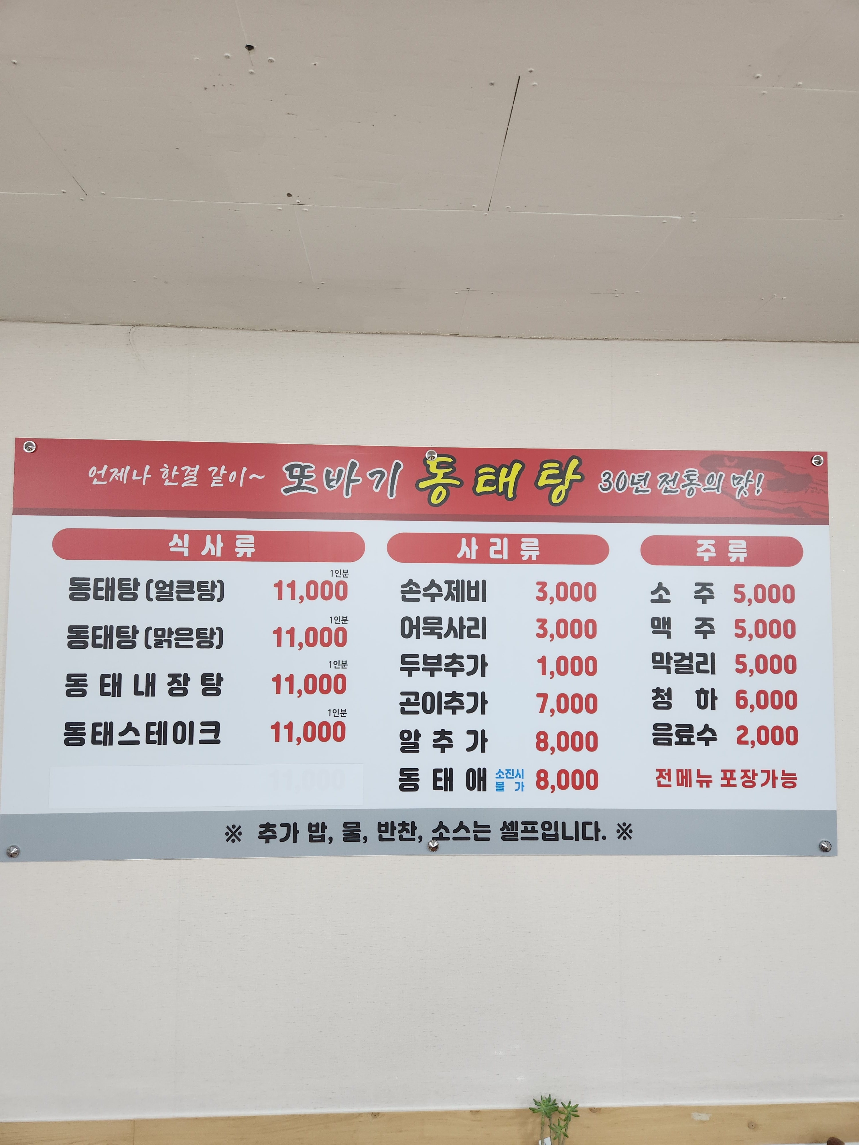 - 동태맑은탕 12,000원