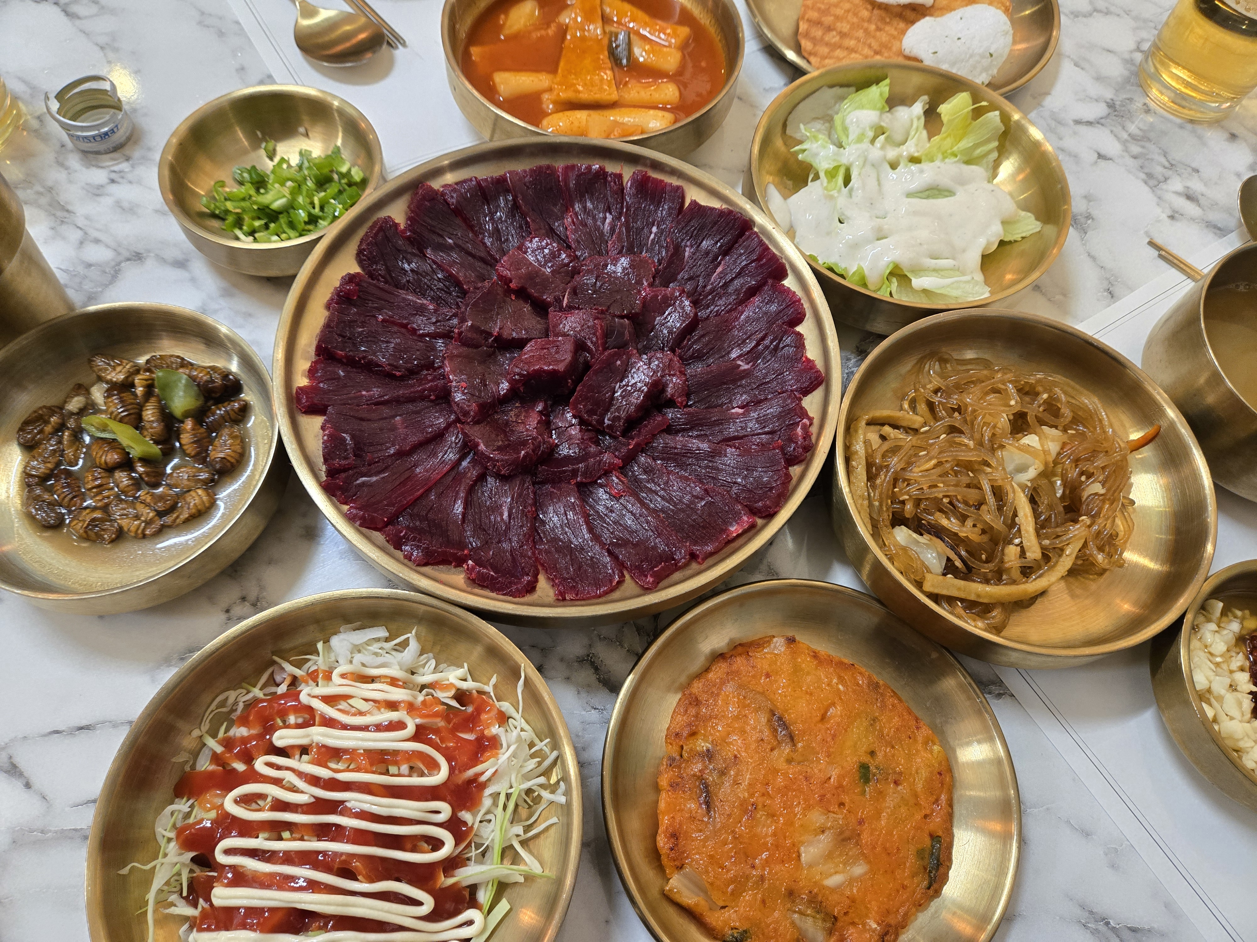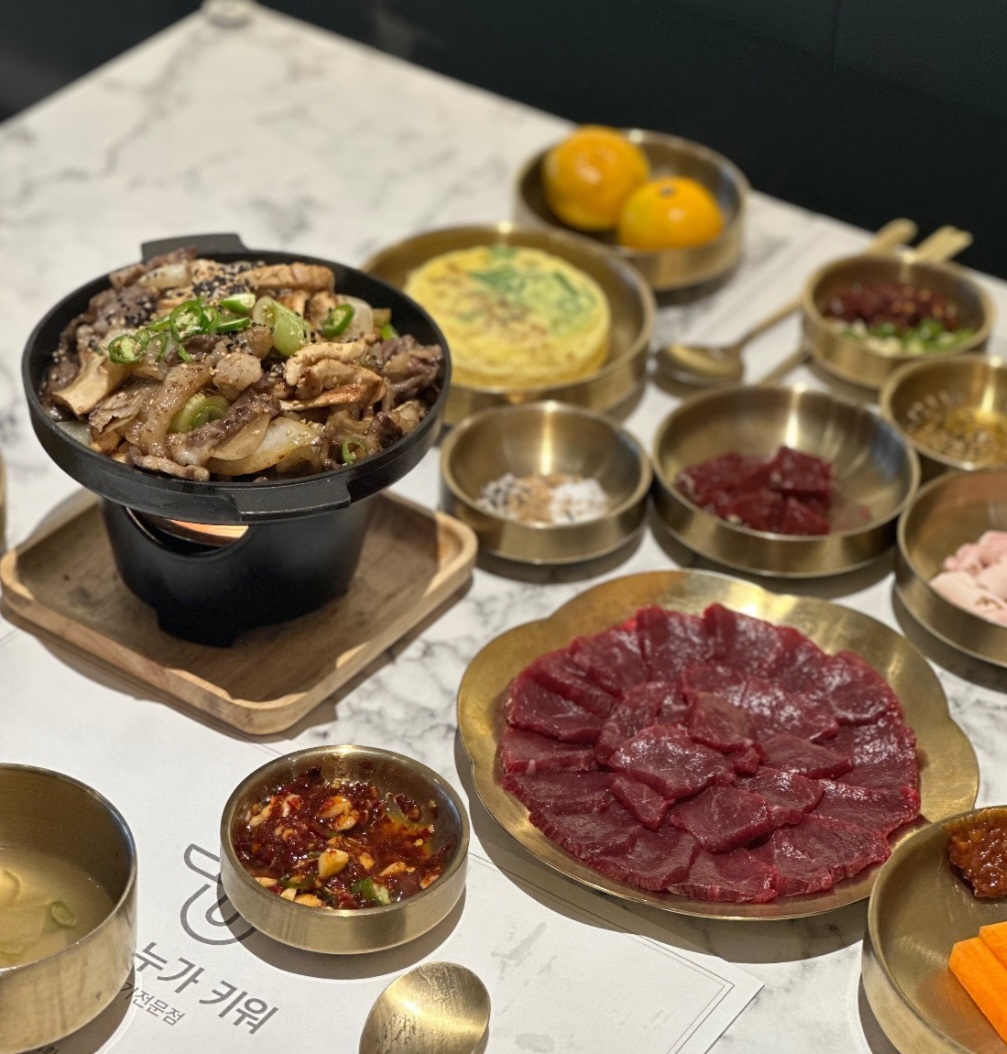 또 방문하고 싶은 업소입니다^^ 가족들과 설연휴를 앞두고 근처 생고기 전문점에 방문했었는데 아이들과 함께 가기엔 분위기가 별로라 급하게 검색하여 찾아온 곳이 "소는 누가 키워"였습니다~ 외부에서 본 매장 모습은 모던한 카페 분위기라 무척 마음에 들었습니다^^ 설연휴 전이라 생고기는 도축이 안된다고 하여 소누가 세트를 주문하고 차돌양지 오드래기를 주문했는데 생각외로 넘 맛있어서 네식구의 만족도가 무척 컸습니다. 생차돌박이가 무척 부드러워 추가로 주문하였고 육회낙지탕탕이도 싱싱하고 깔끔해서 예비초4학년 딸아이도 거부감없이 잘 먹었어요^^ 반려동물 동반가능하다해서 담번엔 집 지키고 있는 저희집 귀염두히 멍뭉이도 함께 재방문 할 예정입니다^^ 사장님~밑반찬 서비스 마니 주셔서 감사합니다^^