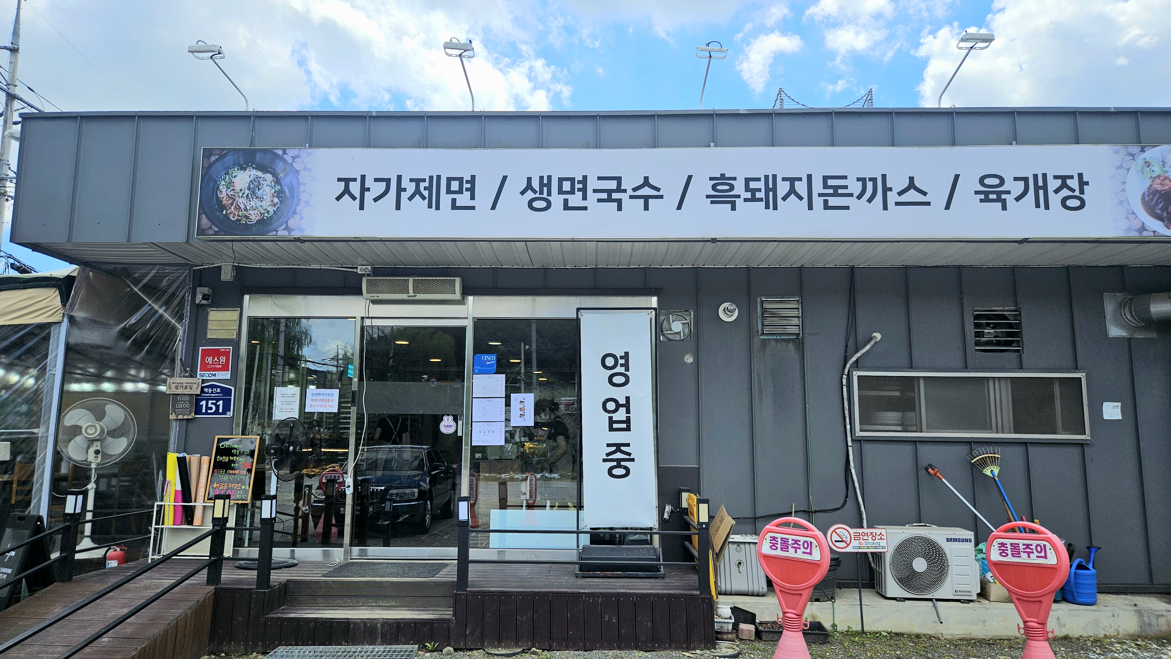 메밀맜있고 돈까스랑 육개장도 맛나요. 무엇보다 자가제면이라서 면이 고소합니다. 베이커리도 함께 하니 식후 디저트까지 한방에 해결됩니다. 주차장도 넓고 좋아요