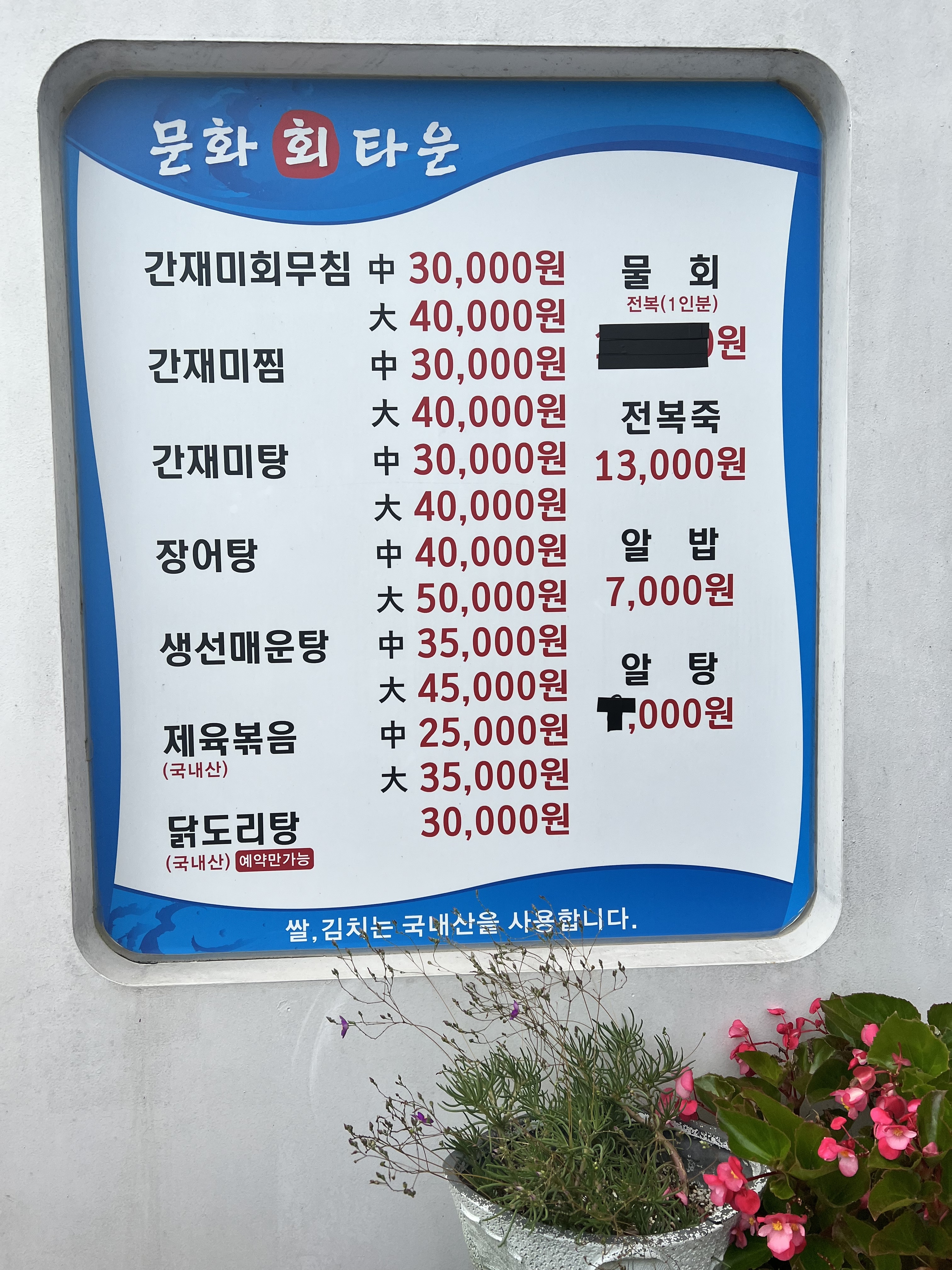 - 한상차림(1인 매운탕포함) 5,000원