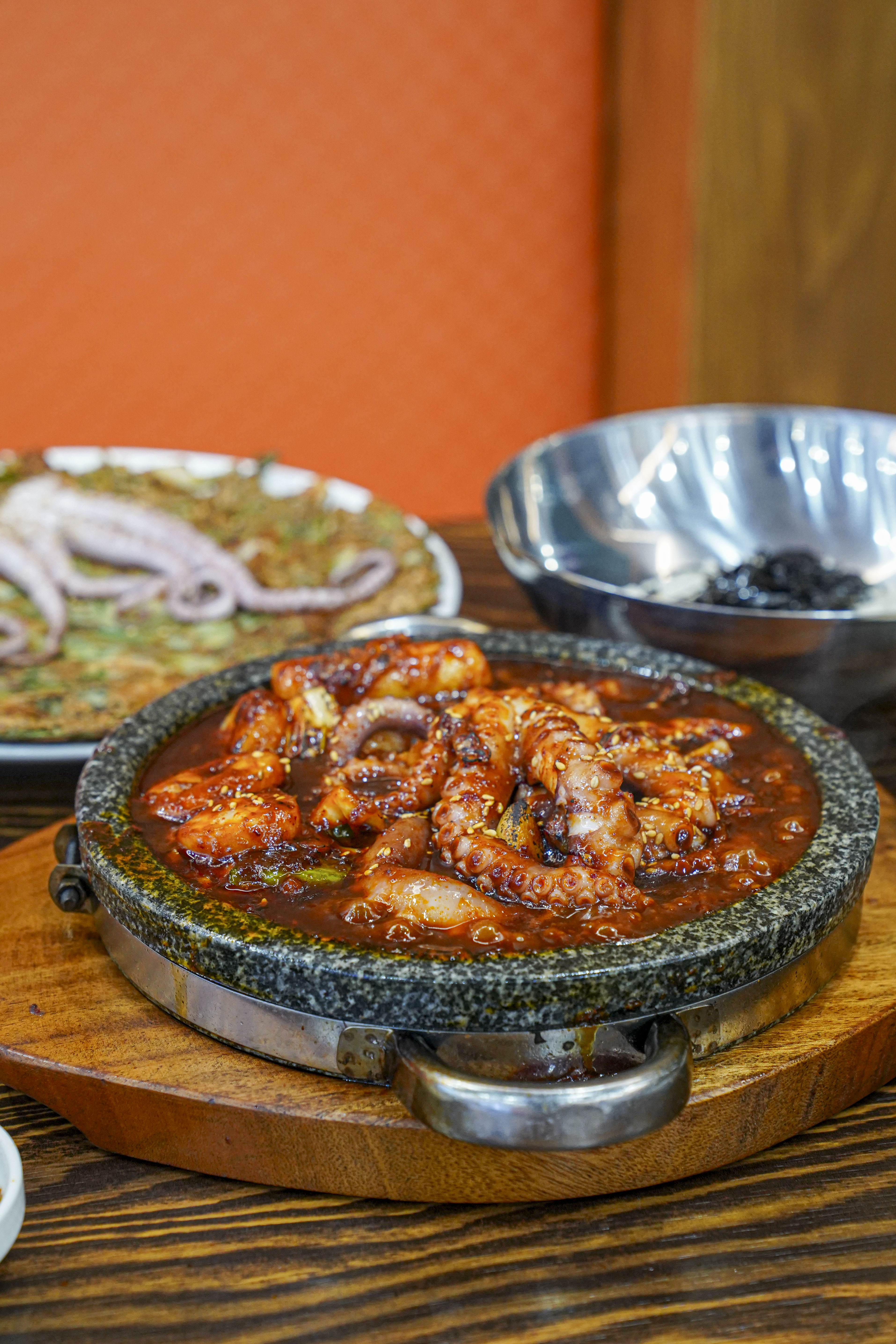 돌판에 낙지볶음이라니!! 이 조합 미쳤잖아요~~ 맵기 조절도 가능하고 취향에 따라 토핑도 고를 수 있는데 저희는 관자, 새우가 들어간 조합에 보통맛으로 시켰는데 아주 만족스러웠어요 ㅎㅎ 셀프코너에서 밥 무한으로 먹을 수 있는 것도 맘에듭니다>< 낙지볶음 땡길 때 재방문할래요~~