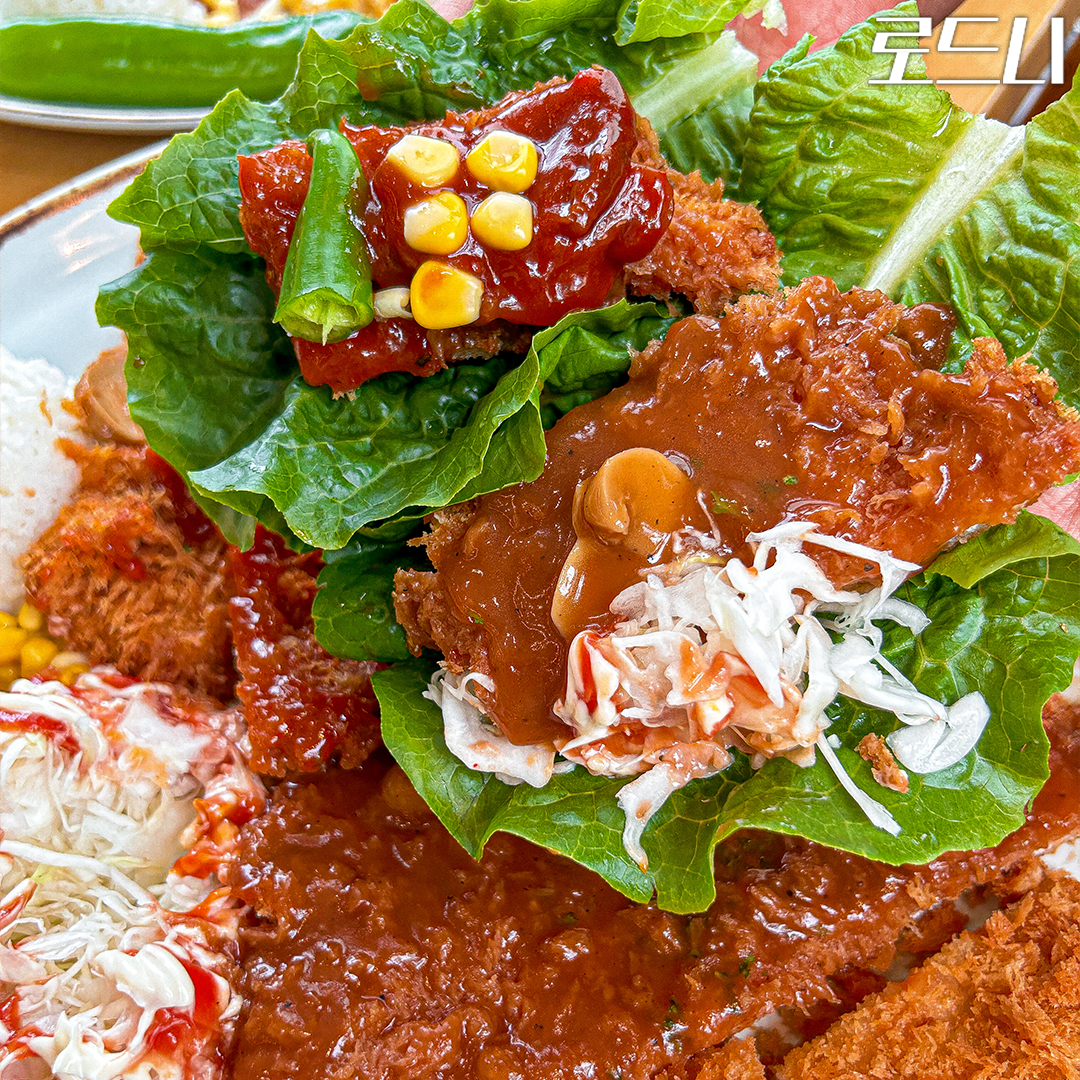 🔥 진심 왕 돈까스 & 반모밀 세트 이름에 왜 '왕'이 붙었는지 단번에 이해되는 비주얼… 접시를 뚫고 나갈 것 같은 크기 보이시나요? 이곳은 특허받은 레시피로 튀겨내서 그런지, 겉은 입천장을 주의해야 할 정도로 바삭하고 속은 두툼한 고기 결이 살아있어 촉촉함 그 자체💦 기가 막힌 반모밀은 자칫 느끼할 수 있는 돈까스의 뒷맛을 살얼음 동동 띄운 모밀이 싹 잡아주니 무한 흡입 가능😮 🔥 치즈 폭포 돈까스 치즈 덕후라면 무조건 직진! 썰자마자 치즈가 말 그대로 '폭포'처럼 쏟아져 나온 거 보이시죠? 치즈의 고소하고 진한 풍미에 쭈욱 늘어나는 재미까지 다 맞춘 돈까스는 치즈와 돈까스를 사랑하신다면 무조건 주문각😋