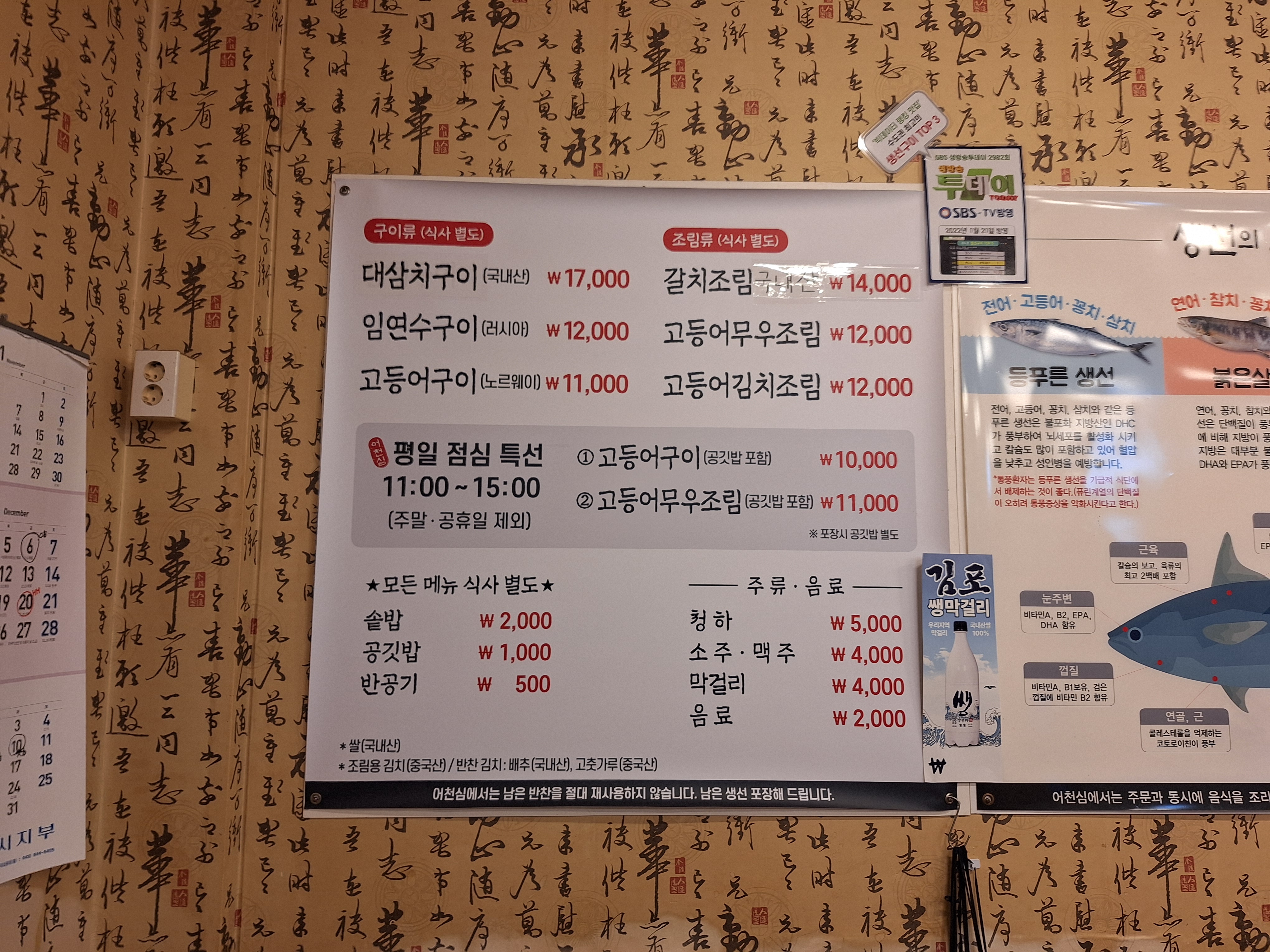 - 고등어구이 14,000원