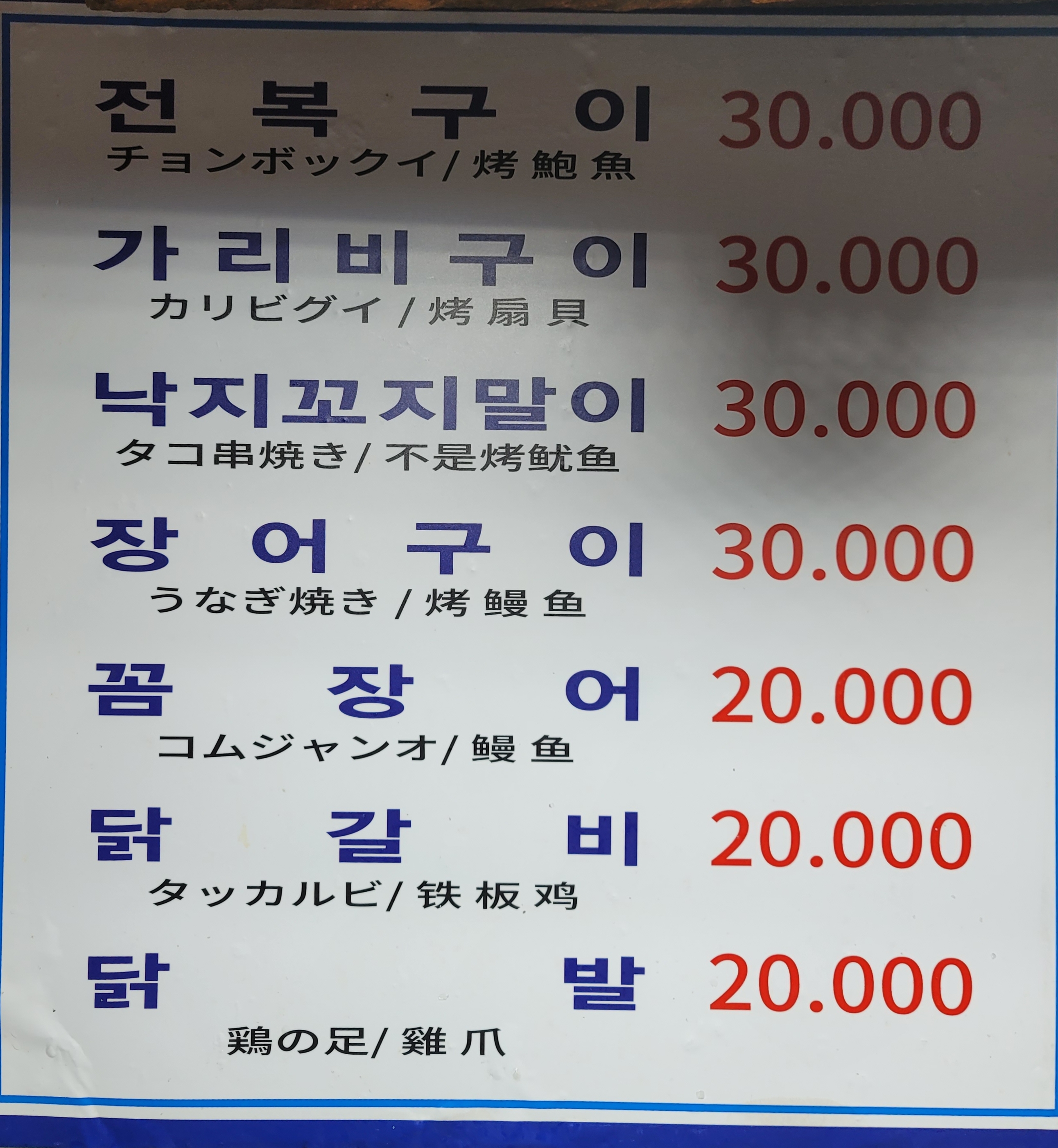 - 새우구이 40,000원