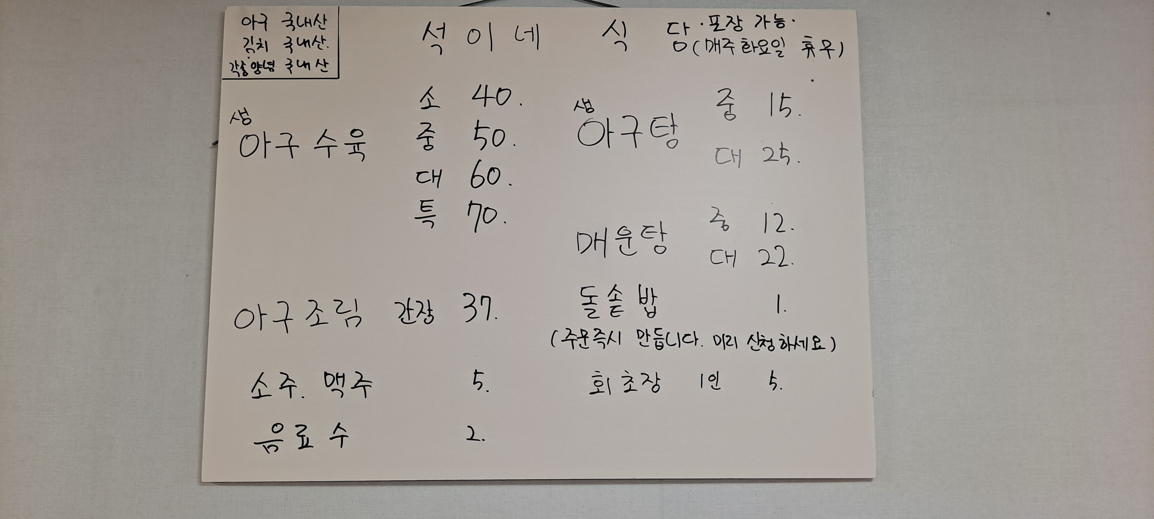 - 아구수육 40,000원