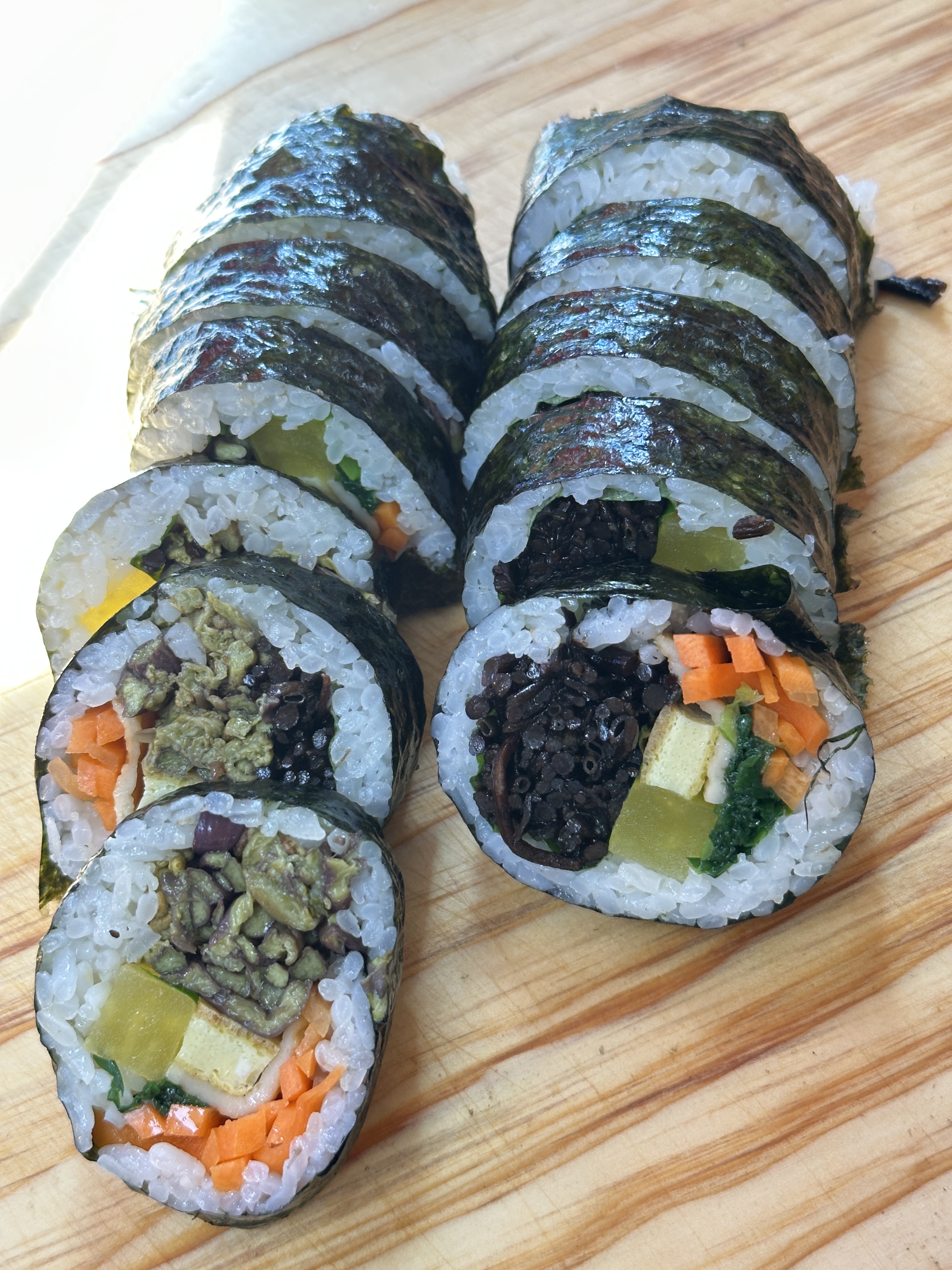 꿋꼿고사리김밥, 톳김밥 포장해서 숙소에서 저녁으로 먹었어요 김밥 크고 양 많아요 톳김밥은 김밥 하나씩 뗄때마다 모양이 흐트려져서 그게 좀 아쉽더라구요 고사리랑 톳 많이 들어있어서 맛이 잘 느껴지고 식감이 좋아요