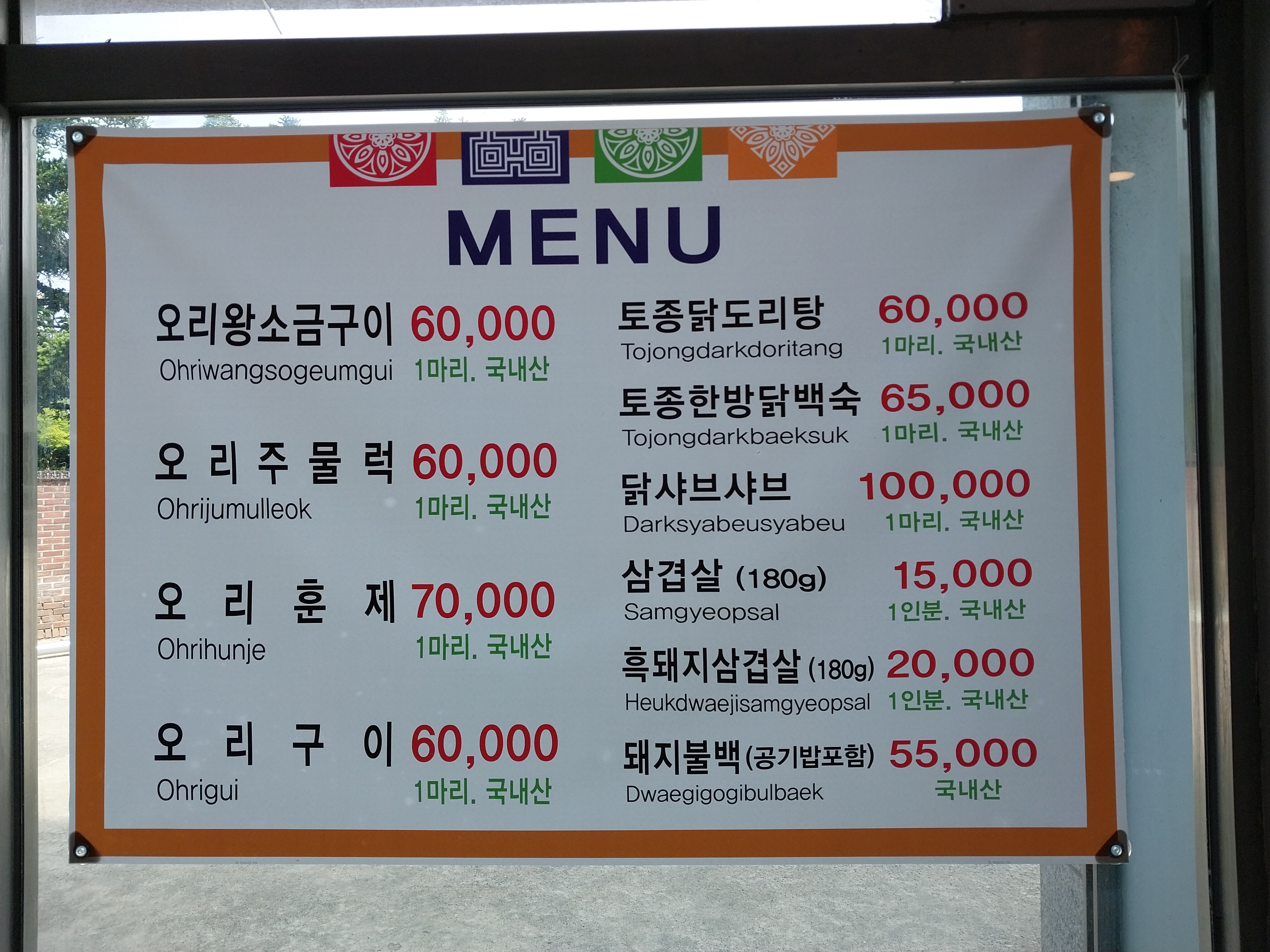 - 오리구이 60,000원