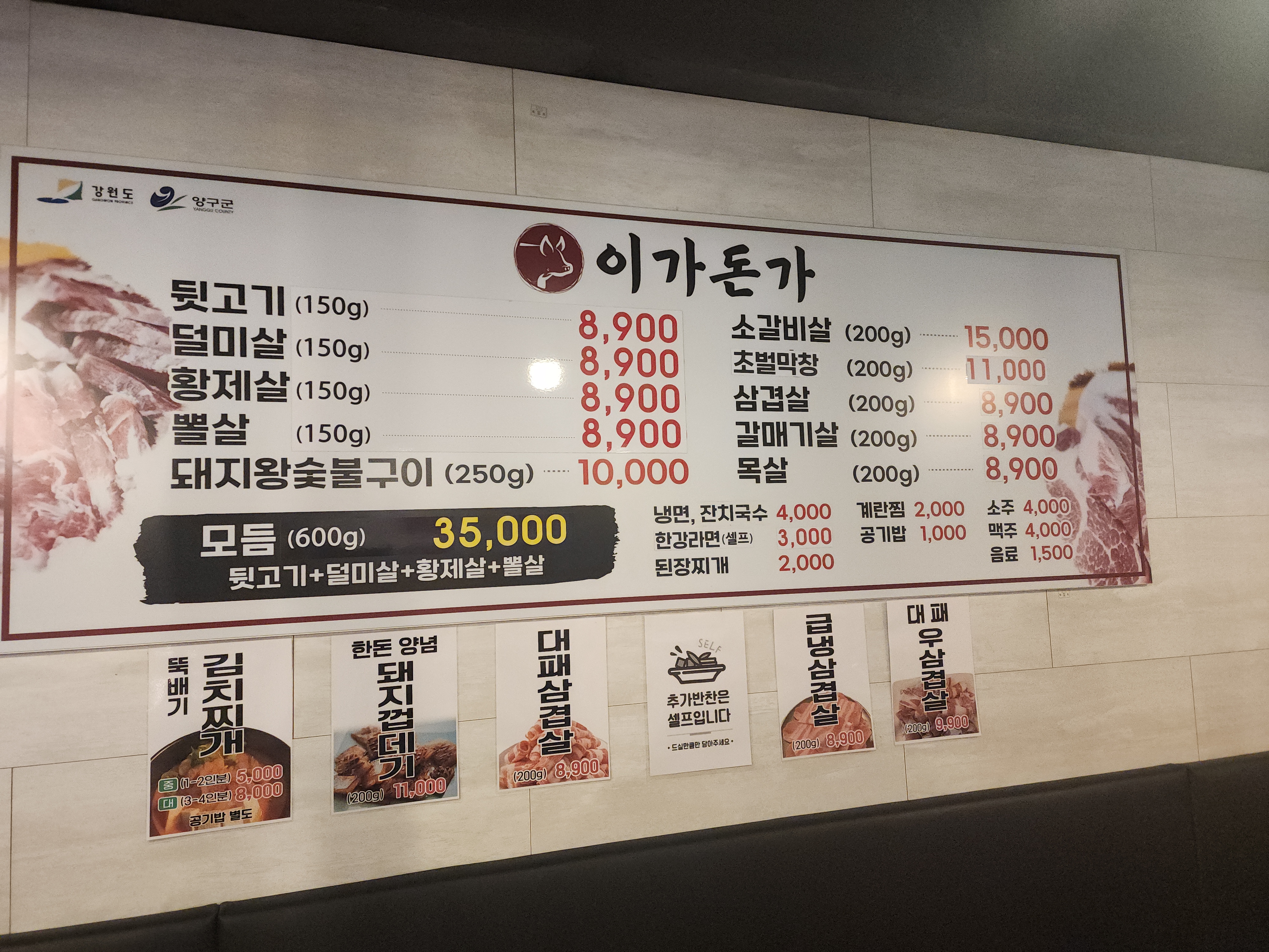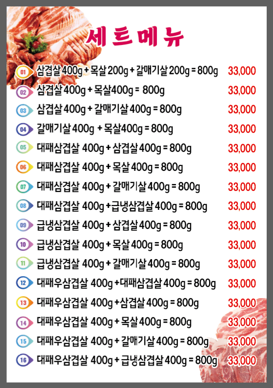 - 삼겹살, 뒷고기, 황제살, 뽈살 등 8,900원