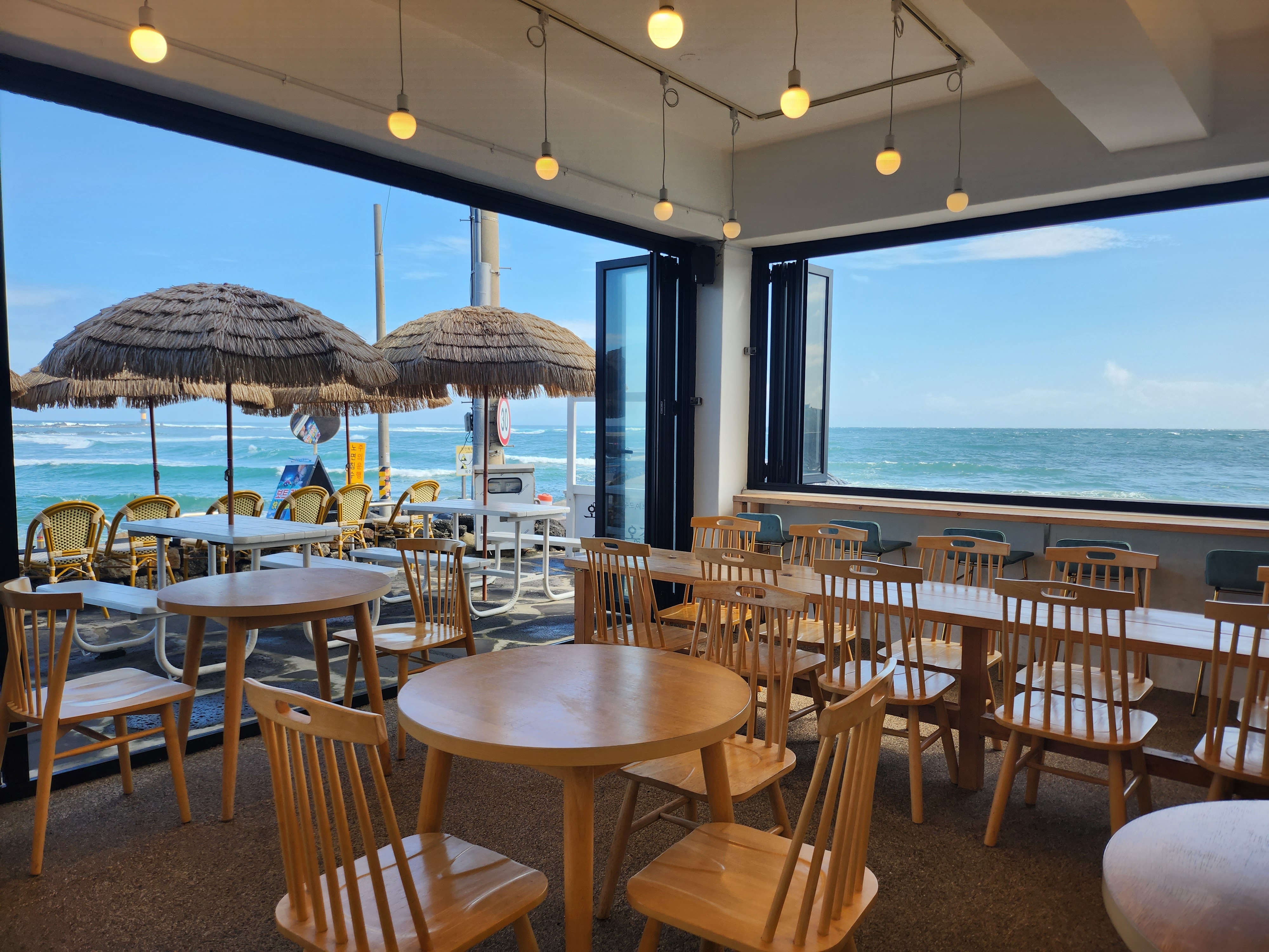 김땅미우연히 지나가다 들어갔는데 바다 바로앞이라 뷰가 이뻐여 ⋆⸜♥⸝⋆ 한적하게 잘 보내다 갑니당 🍊💛
