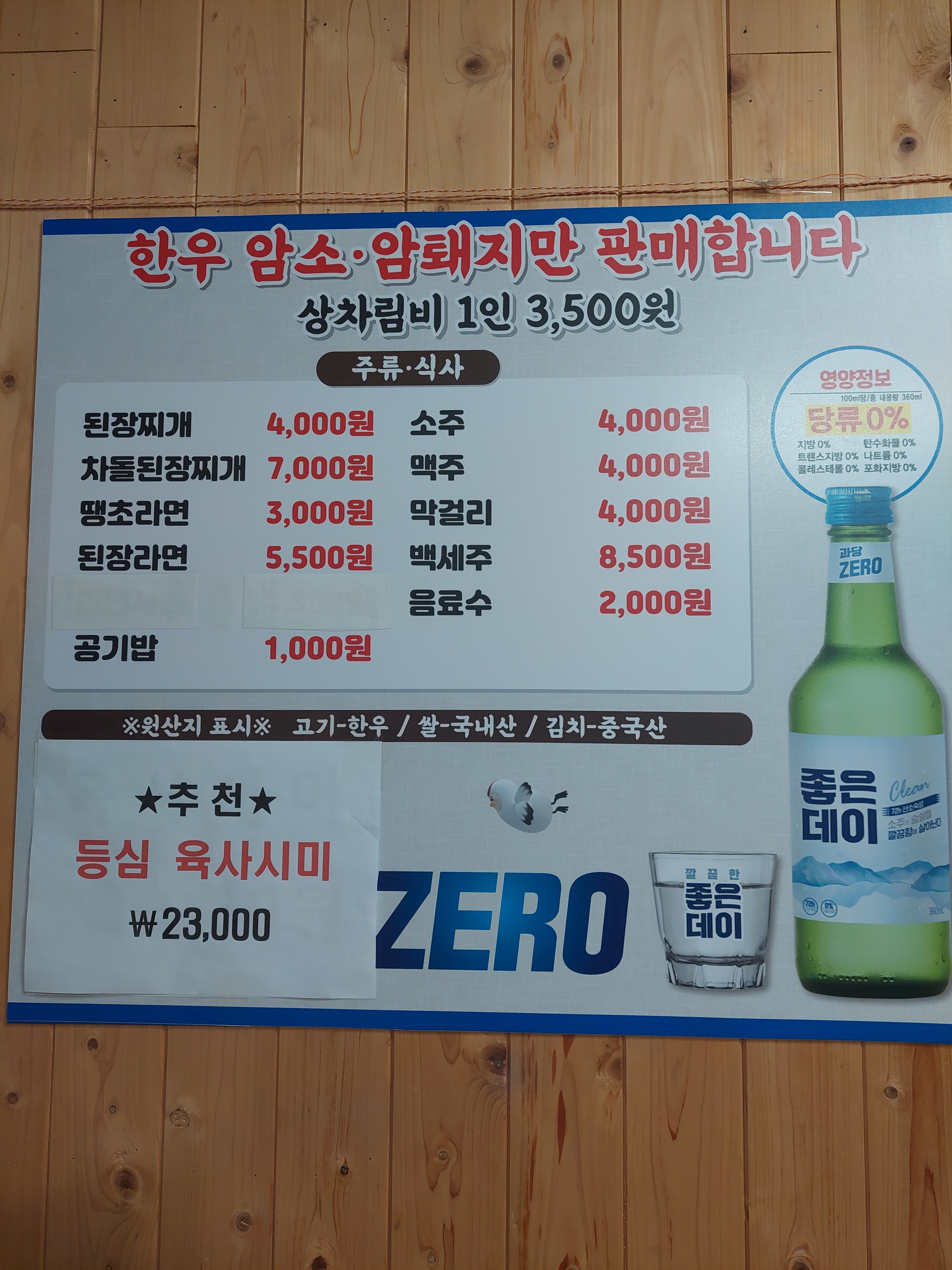 - 상차림 1인 (어린이무료) 3,500원