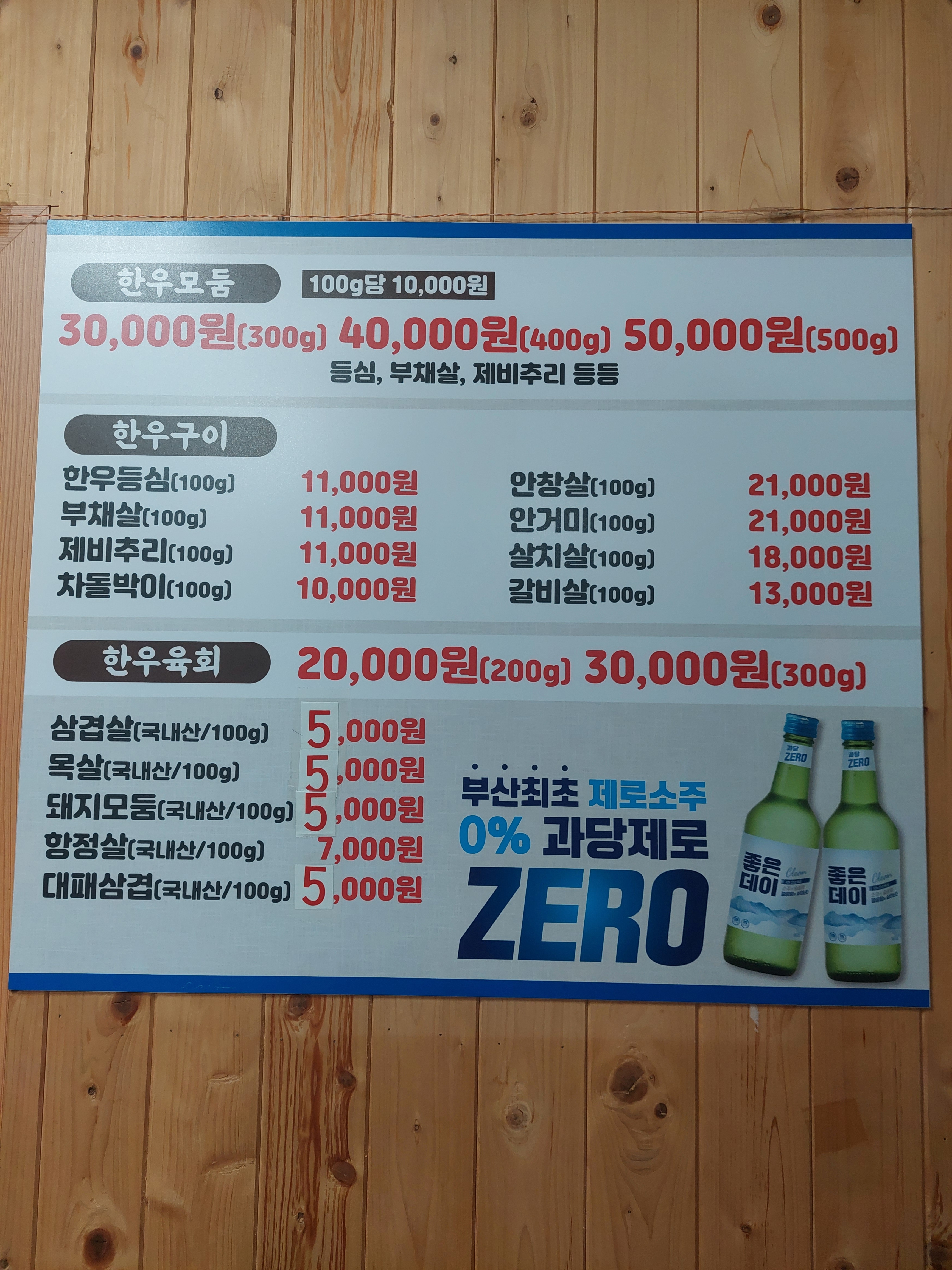 - 삼겹살 100g 5,000원