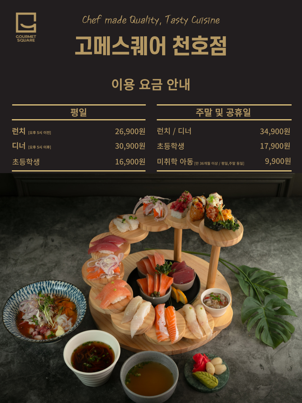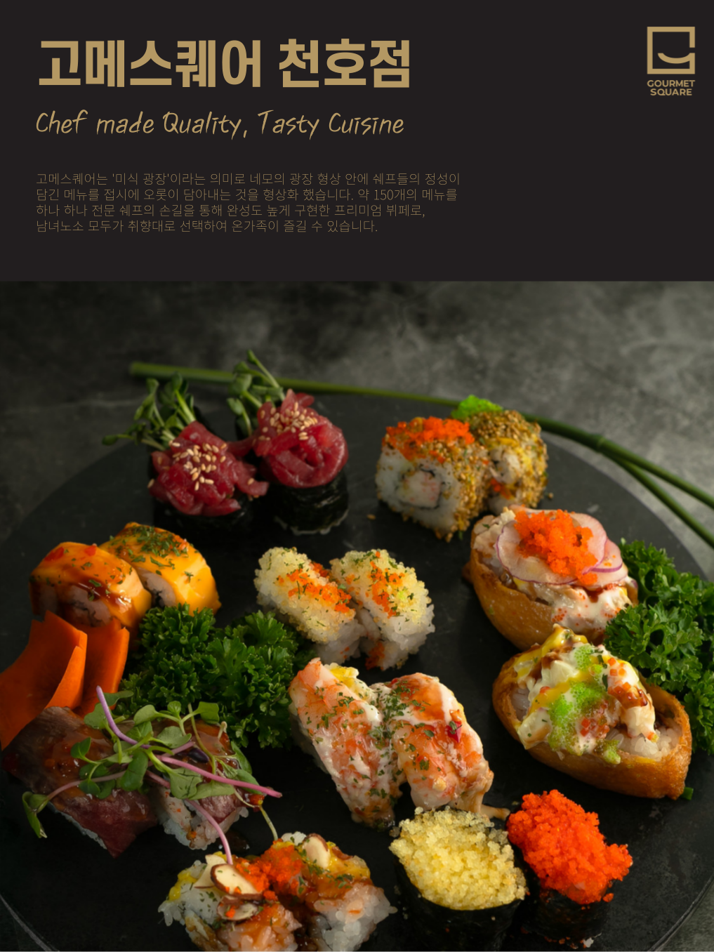 삼남매엄마1004부모님, 아이들과 함께 방문했는데 너무 맛있었어요. 고메스퀘어만의 압도적인 메뉴 덕분에 부모님 모시고 신선한 초밥과 해산물, 편백찜을 즐기셨고, 아이들은 피자, 파스타는 물론 다양하게! 매장이 넓고 쾌적하며 테이블 간격이 여유로워요 대가족이 식사하기에도 전혀 불편함이 없는. 가성비와 퀄리티를 모두 잡은 천호동 최고의 가족 외식 장소입니다 맛있게 잘먹었습니다