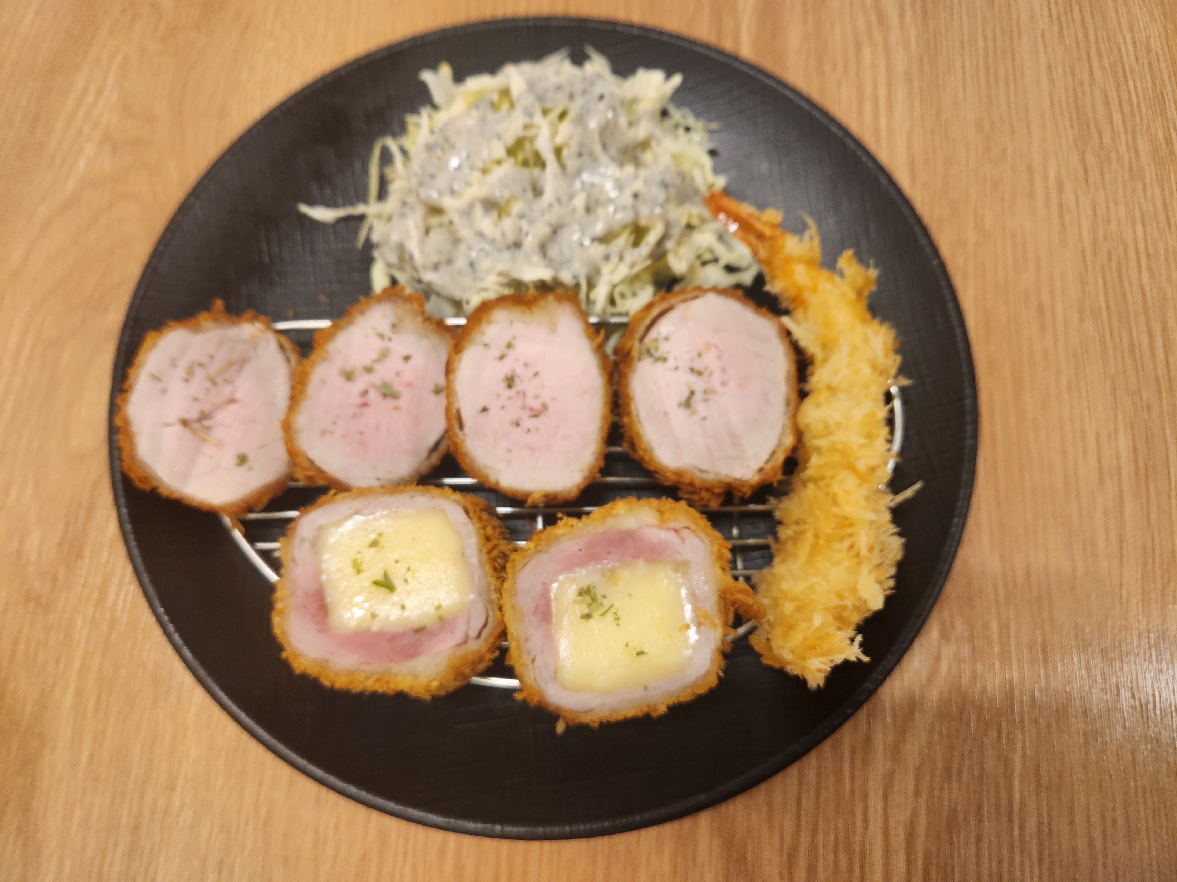• 모듬카츠(히레카츠+치즈카츠+왕새우튀김 13,000원