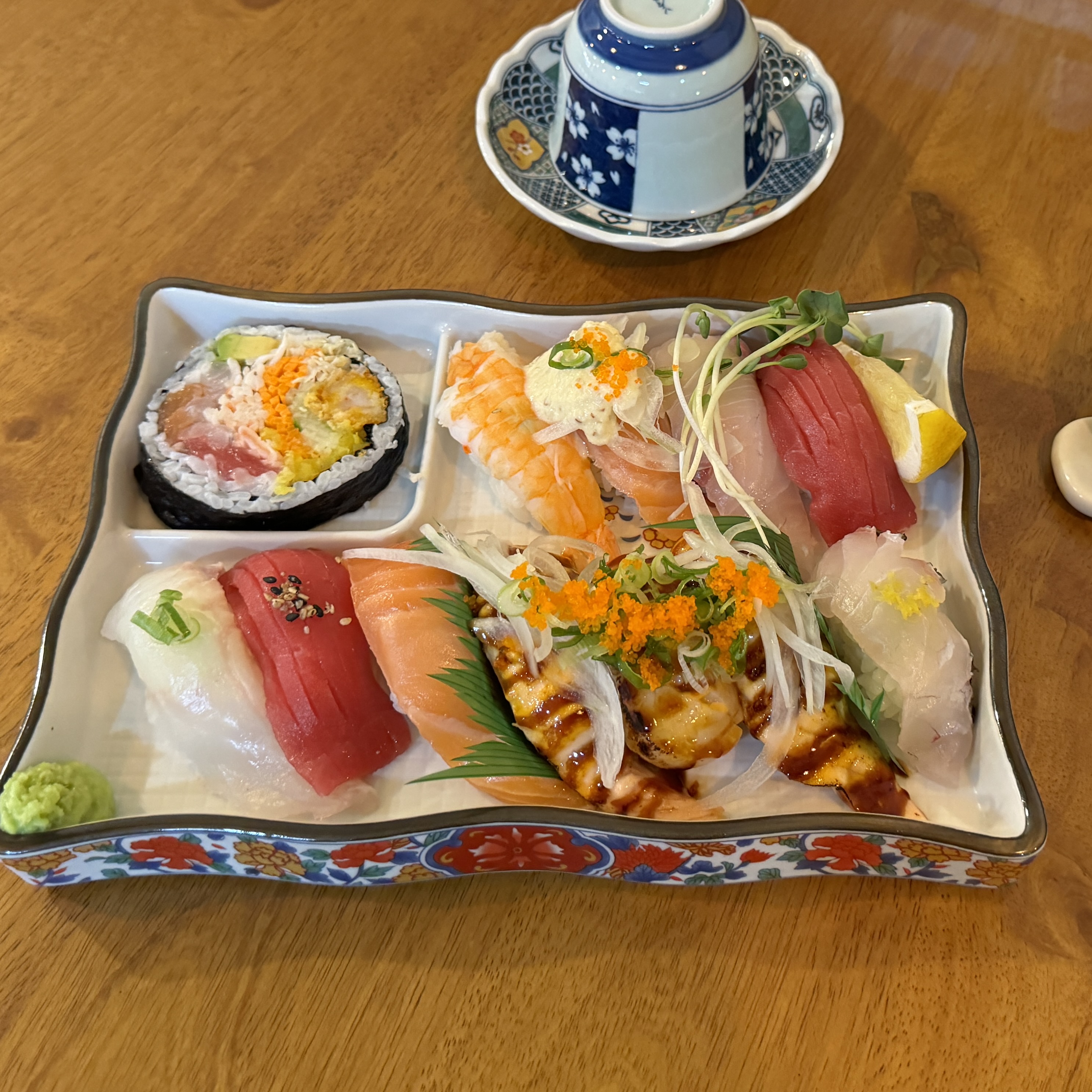 OOOOp또간집 보고 왔어요 웨이팅 있을까봐 걱정했는데 평일이라 그런지 12시 40분 쯤에 방문 했는데도 널널했어요 훈제 연어를 안 좋아해서 B세트 주문했어요 흰살생선 스시 별로 안좋아 하는데도 하나도 안비리도 안질기고 너무 맛있게 잘 먹었습니다 가지튀김도 튀김이 얇고 바삭바삭하고 맛잇엇는데 혼자 먹기엔 너무 양이 많은것 같아요 물론 안남기고 다 먹었지만 배가 불러서 저녁을 못먹었어요 2명 이상 올때 사이드로 좋을것 같아요.! 기본 장국도 맛있고 락교도 단단하고 싱싱했어요 전주여행 시작 맛있게 잘 하고 갑니다~