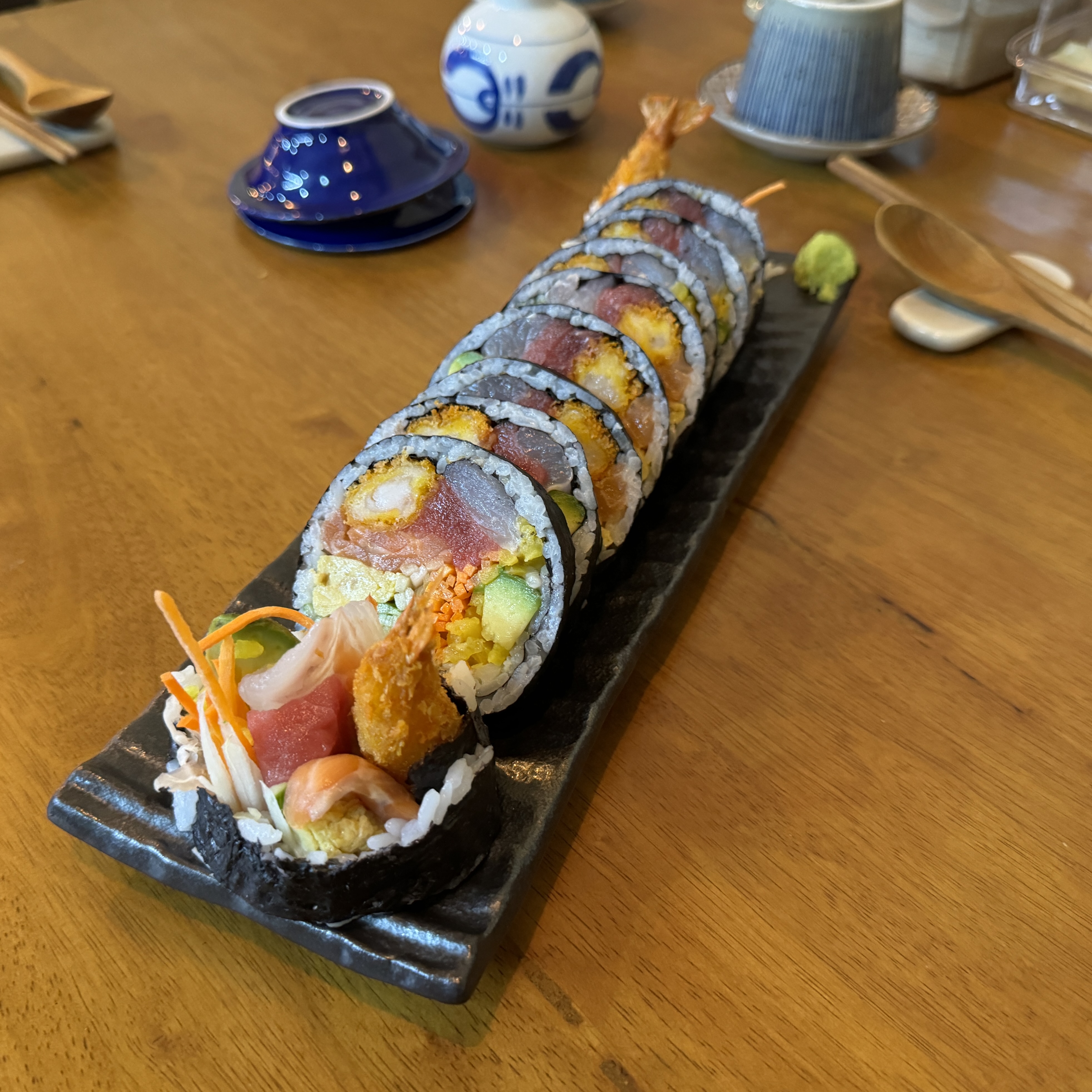 여행하고 있는데회가 다 부드럽고 신선해서 맛있고 밥양은 많지 않고 회가 도톰하니 좋아요 사이드로 가지튀김도 시켰는데 바삭하고 소스는 짭달하니 술안주로 생각날듯 해요~