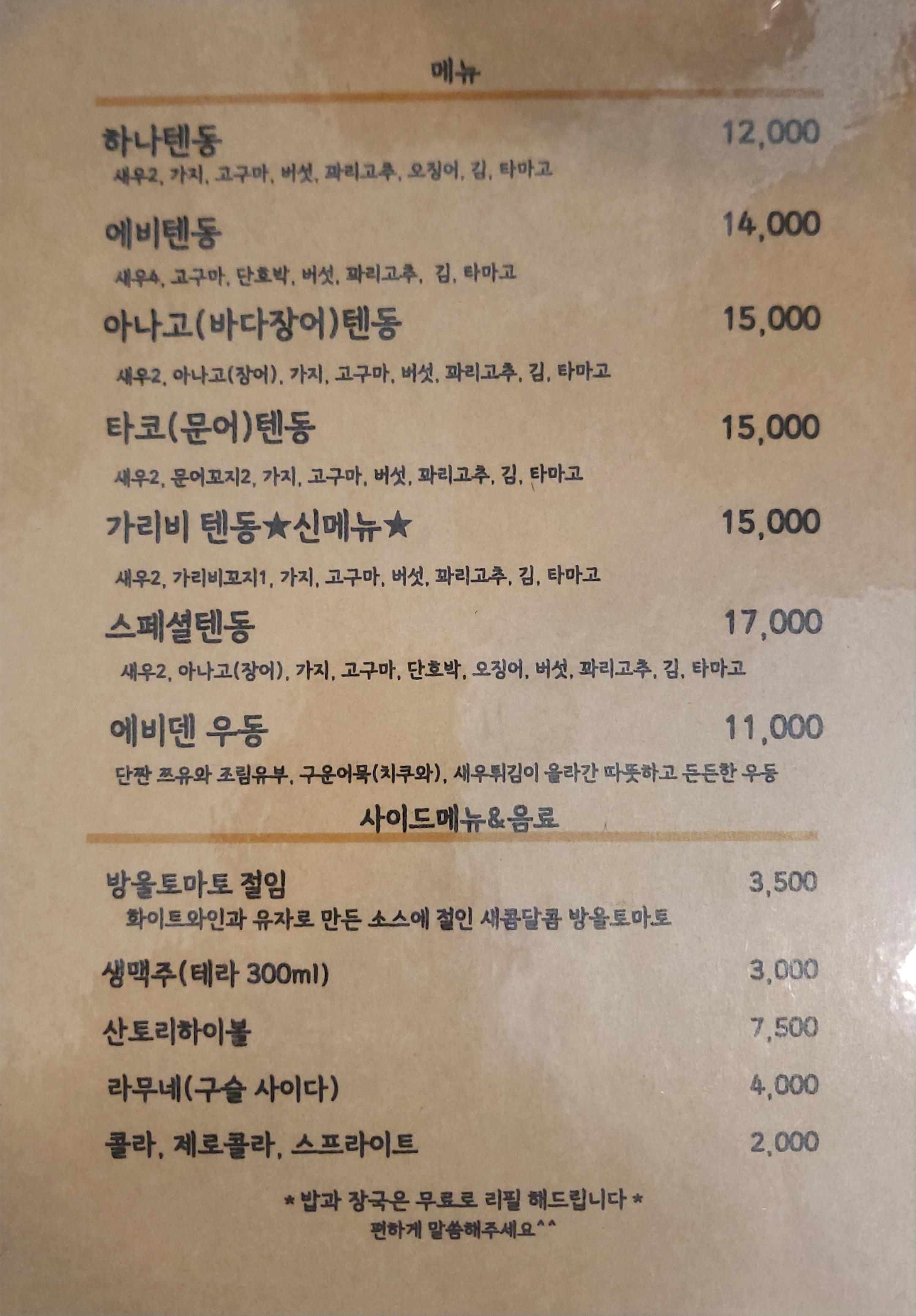 - 스페셜텐동 17,000원