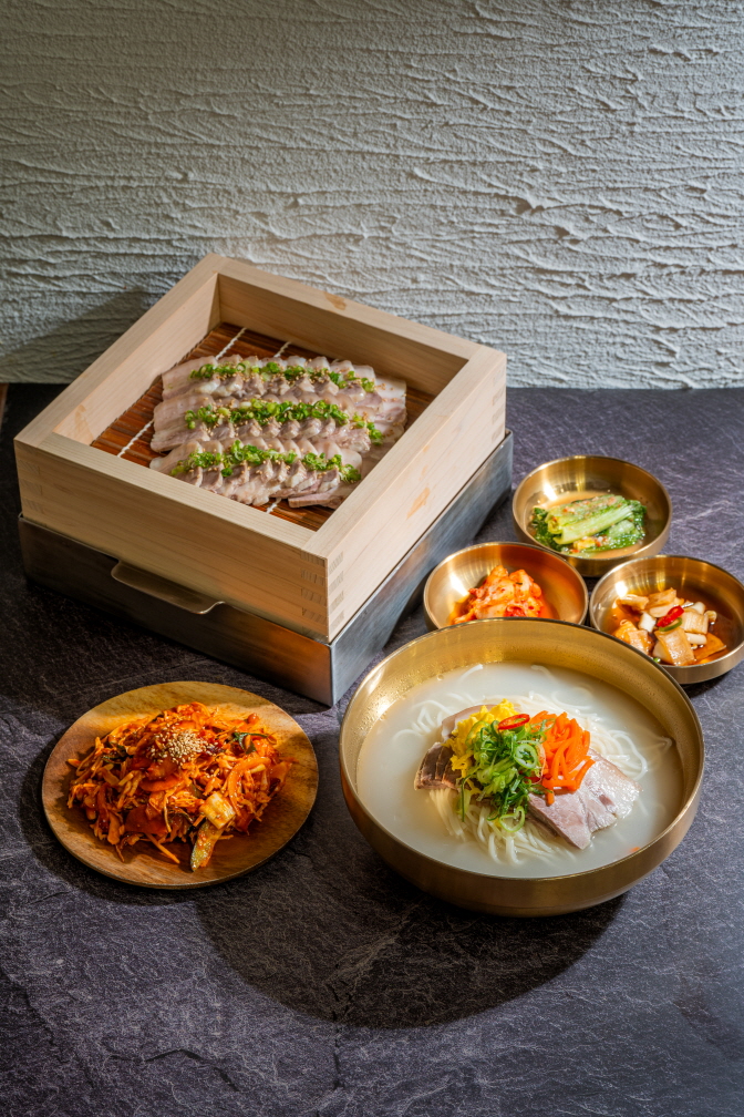 수띵제주 고기국수 연못뷰 고국수 아침식사 먹거리 @수띵 세련된 분위기의 연못뷰를 담을 수 있는 제주공항 근처 고기국수 맛집 소개해드릴게요! 뜨끈한 국물 한 그릇이 제대로였던 고국수인데요. 정갈한 기본 메뉴는 물론, 다른 곳에는 없는 유니크한 메뉴들도 있어서 여행 중 특별한 제주 아침식사 하고 싶다면 저장해둬야 할 곳이에요. Ⅰ주소 : 제주 제주시 용문로 14길 4 1층 Ⅰ영업시간 9:00-21:00 *브레이크타임 15-17시 / 라스트오더 19:50 Ⅰ가게 앞 주차 가능, 유아의자, 남/녀 화장실 구분 1. 위치 가는길 주차 제주공항 근처 자차 10분 거리! 렌트카 수령이나 반납 전후로 방문하기 가까운 위치랍니다. 건물 바로 앞이 주차장이라 주차도 편했어요. 2. 매장 분위기 매장 내부, 분위기 외관만 보면 일반 건물 느낌이지만요, 안으로 들어가면 세련된 분위기로 확 달라져요. 고급스러운 연못뷰가 펼쳐지면서 조금은 특별한 제주 고기국수 가게라는게 느껴지더라고요. 잔잔한 연못 위로 알록달록한 물고기가 헤엄쳐 마치 정원 속에서 식사하는 느낌이랄까요. ♥ 테이블은 대부분 4인석 위주로 연못을 중앙에 끼고 넓게 구성되어 있답니다. 전체적으로 깔끔하고 차분한 분위기라 부모님 모시고 방문하거나 데이트로도 제주 아침식사 즐기기 평화로운 공간이었어요. 3. 메뉴 메뉴판, 가격 제주 고기국수하면 떠오르는 돼지뼈 사골로 우려낸 돔베고기국수, 비빔국수는 기본으로 준비되어 있고요. 고국수에서 특히 마음에 들었던 메뉴는 은갈치 국수, 문어튀김, 은갈치튀김 등 다른데는 없는 유니크한 구성입니다. 2~4인상 잔치상 세트메뉴도 가성비 괜찮았으니 인원수에 맞춰서 살펴보세요. 4. 음식후기 음식 메뉴 후기 주문메뉴 3인 잔칫상 : 74,000원 제주 은갈치 국수 : 13,000원 밑반찬과 함께 제가 주문한 3인 잔치상이 순서대로 준비됩니다. 3인 잔치상은 고기 or 비빔 or 갈치비빔 택3 + 돔베고기 & 문어무침 + 문어튀김 + 음료까지 푸짐하게 나오는 세트 구성이에요. 제주 고기국수 근본은 뽀얀 국물이지만 저는 은갈치국수가 궁금해서 추가로 주문했어요. 은갈치로 육수를 낸 쯔유 느낌의 깔끔한 베이스라 속 깔끔하게 정돈해주는 제주 아침식사 메뉴로 적절했답니다. 13,000원 가격에 튀김 세트도 함께 나옴! 단호박, 깻잎, 은갈치 튀김 등 국수와 함께 곁들여 먹으면 든든하게 먹을 수 있는 구성이구요. 특히 은갈치 튀김이 쫀득하면서도 담백한 튀김이라 친구들도 너무 잘 먹어서 뿌듯했지요. 강경 비빔파인 친구의 의견으로 갈치비빔국수도...