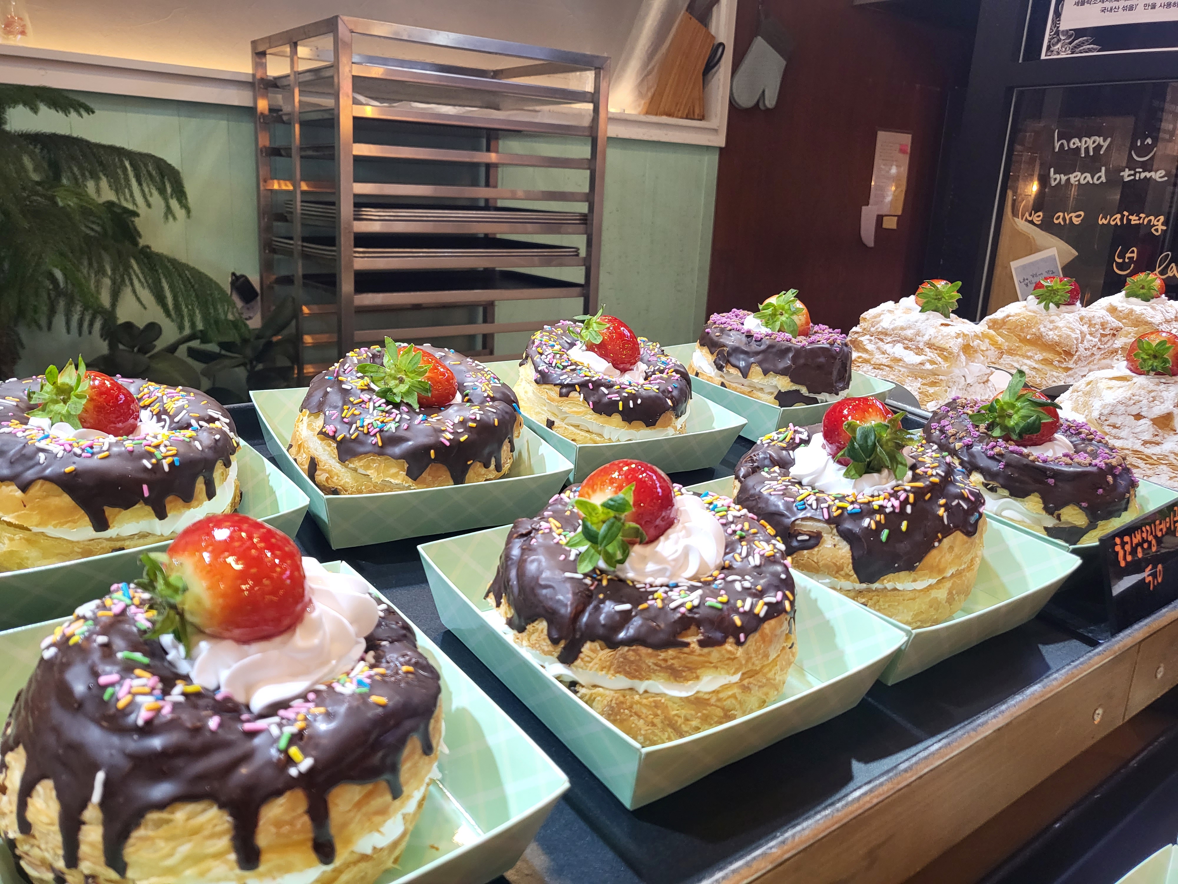 HappyLife가평어린이 음악놀이터 방문으로 입장대기하며 커피 사러 갔는데 빵이 혹하게 한 곳 점심 먹고 온 게 아니면 몇 개씩 맛봤을 것 같아요. 바로 앞이 음악놀이터로 공원 잘 구성되어 있어 테이크아웃 공원에서 먹는게 더 좋더라구요. 빵 가격이 좀 되지만 워낙 요즘 베이커리 가격이 비싸져서... 상대적으로 보통 가격대인것 같아요.