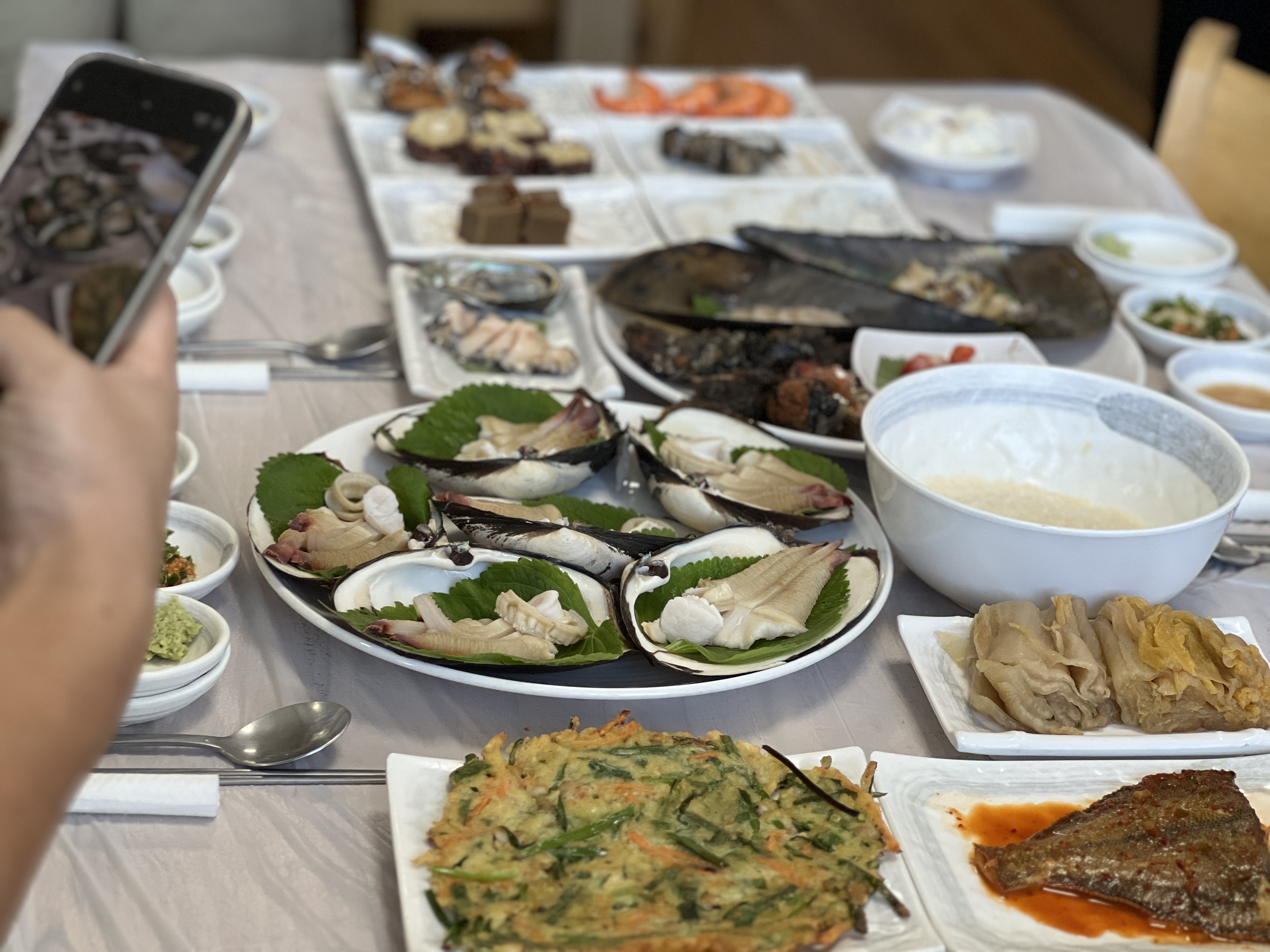 여똑똑왕 우럭조개= 코끼리 조개 라고도 하죠 거제엔 숨은 코끼리조개 집이 곳곳에 있었는데 점점 인기가 있어지면서 다 별루 됐어요 같이 나오는 반찬도 별로고 가짓수도 줄고- 그런던 차에 새로운 곳을 발견햇네여!!! 부부가 코끼리 조개 좋아해서 일년에 꼭 이맘때쯤 먹고든요 히히 요렇게 생긴것이 코끼리조개 입니다 ㅇ예약하고 가면 간단히 차려져 있어요 간단히 먹을 수 있고 그때그때 조금 변경이 이썽요 그 다음 차례차례로 나오는 것들이에요 해산물은 입낫 돋구기 짱 좋아요 많지 않지만 구성이 알차고 신선합니다 코끼리 조개 메인입니다 초밥 처럼 해먹을 수 있도록 밥에 간이 되어잇어 아이들도 냠냠 잘 먹구요 묵은지랑 같이 기름장에 찍어드시면 진짜 마싯어요!!! 다른데보다(이미 알려진곳) 보다 양도 만족 크기도 만족 맛도 만족이에요 묵은지도 짱 맛이엇어요!! 먹으면서 여기가 “찐” 이라고 몇번이나 ㅎㅎ 마지막은 튀김입니다 바삭바삭 얼마나 마싯게여..... 미리 구워둔 눅눅 아닙니다 바삭바삭 식감도 살아잇고 기름도 깨끗한지 정말 마싯어요 하- 후기쓰다보니 또 먹고싶 깨끗하게 남김없이;:; 클리어;; 저희아들은 6세인데 코끼리 조개 마싯다구 맨날 먹고 싶다고 노래를 불러요 너무 잘먹구여 저기선 초밥용 밥이랑 술술 들어갑니다 너무 알려지지 않아서 혼자 알고 싶었지만 (유명해지믄 변할까바요 아시자나여) 애정하는 스사사에서 정말 많은 정보를 습득하며 매일 출근 도장 찍구 있기에 알려드리구 싶었어요 장목 벨버디어랑 가깝구요 차로 10분정도에요 거제오시면 매미성 관광 하시다가 들랴보시면 좋을거 같아요 거제오시면 꼭 한번 들러 맛보시길 보통 여기 장목에서 채취해서 다른 곳으로 간다는 말이 있더라구요 그래서 그런지 더 신선한고 같아요!! 그럼 모두 즐거운 주말 되시길