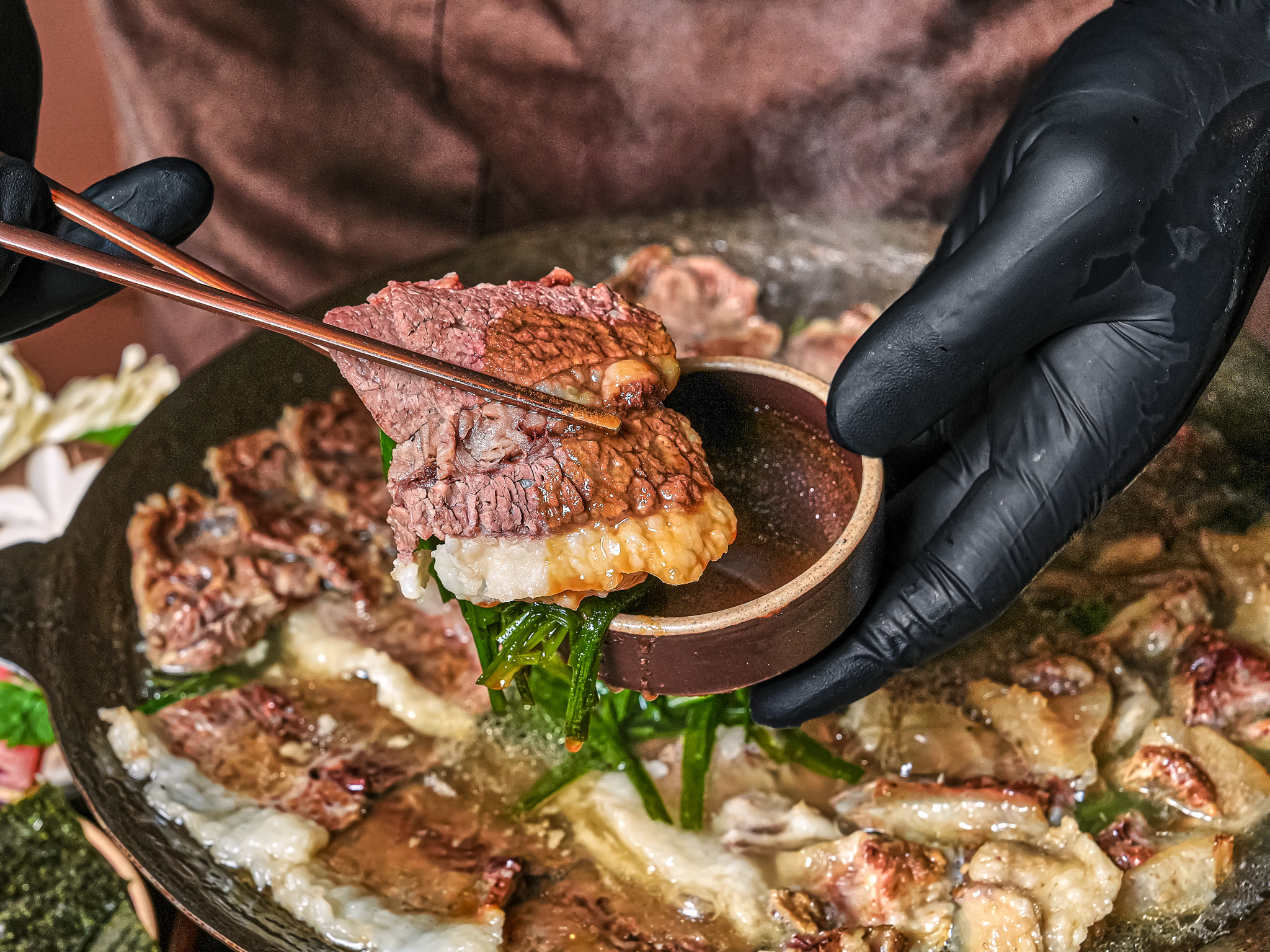 - 한우)차돌박이 간장 전골과 불고기솥밥 32,000원
