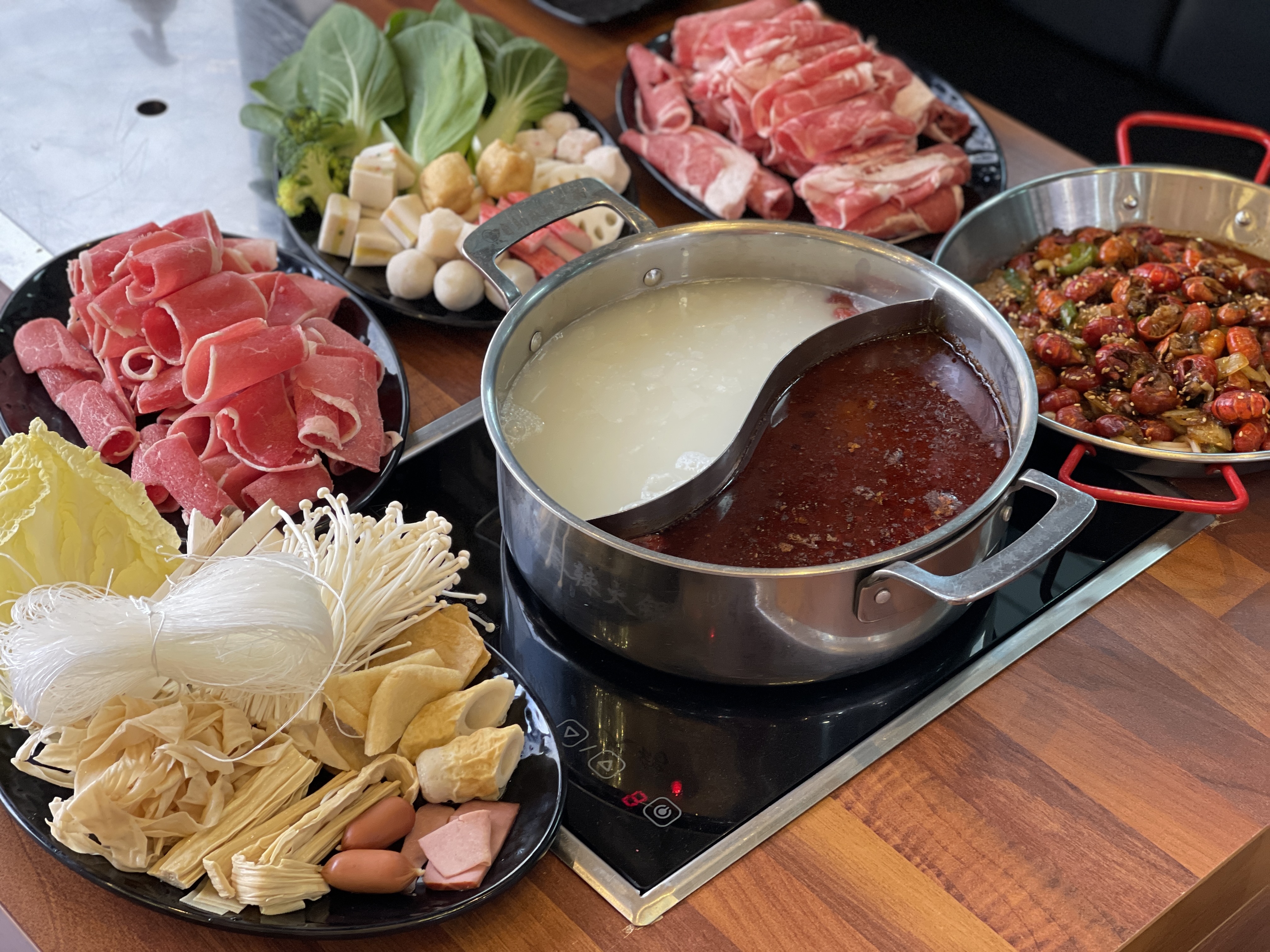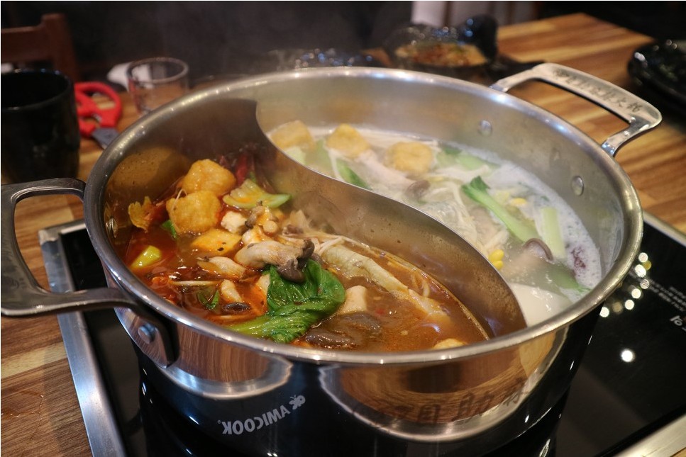 천사의녹차라떼🍲 훠궈 무한리필 - 백탕, 토마토탕 훠궈 안에 넣을 수 있는 재료도 정말 다양하고, 무한리필 메뉴를 먹으면 이용할 수 있는 사이드 메뉴도 있어서 너무 좋았어요! 특히 토마토탕 국물이 눅진하고 너무 맛있어요 🙆🏻