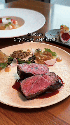 - D)채끝등심 스테이크와 칠게장소스 47,000원
