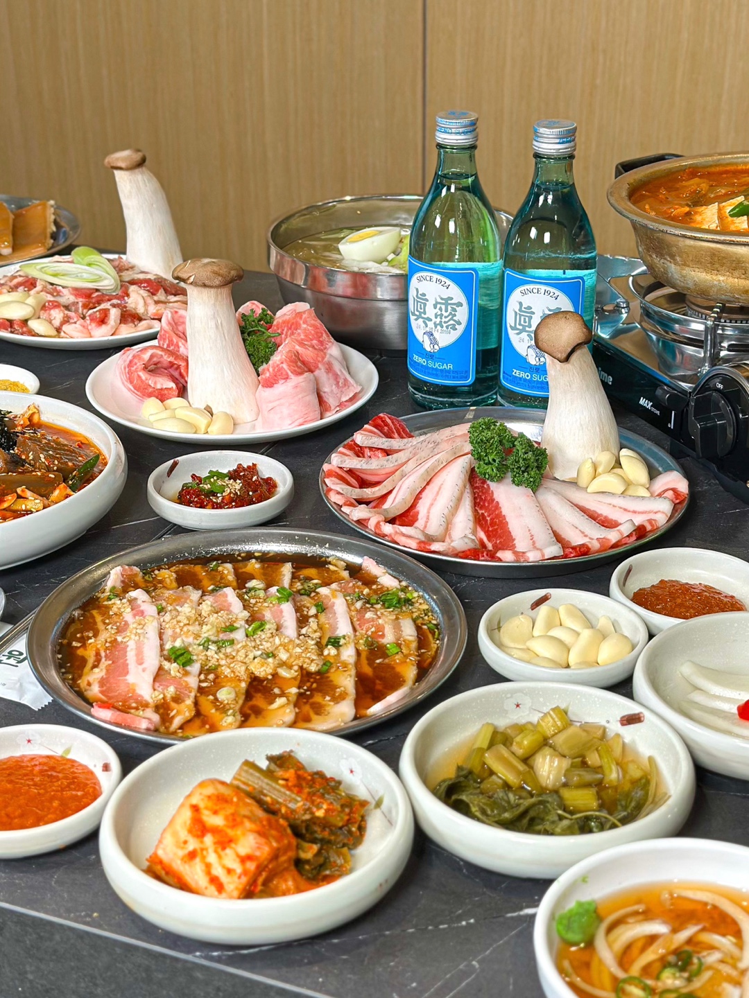 달콤달콤 수플레고기가 맛있어요. 목살과 항정살 너무 맛있습니다. 👍👍👍👍👍 목살이 부드럽고, 항정살은 졸깃해서 좋았어요. 다음에 재방문 하면 목살과 항정살 주문해서 먹고 싶네요. 된장찌개도 너무 맛있어요. 두부랑 야채가 듬뿍 들어서 맛있게 먹었어요. 밑반찬 하나하나 깔끔하고 맛있습니다. 백수농원 삼겹살 맛집입니다