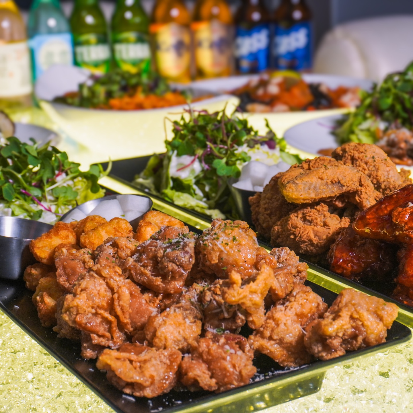 김백찬73강남역에서 친구들이랑 편하게 술 한잔하려고 찾다가 방문한 강남역 술집 디엠 룸술집이에요! 요즘 강남역 룸술집 보면 룸비 있거나 시간 제한 있는 곳이 많은데 여기는 룸비도 없고 시간 제한도 없어서 정말 편하게 이용할 수 있었어요. 룸으로 되어 있어서 친구들이랑 이야기하면서 술 마시기 좋았어요ㅎㅎ 안주로 양념치킨이랑 케이준 샐러드 시켰는데 양념치킨은 겉은 바삭하고 속은 촉촉해서 술안주로 먹기 좋았어요. 양념도 맛있어서 계속 손이 가더라고요. 케이준 샐러드도 야채가 신선하고 깔끔해서 같이 먹기 좋았어요! 그리고 큰 JBL 블루투스 스피커도 무료로 빌려줘서 노래 틀어놓고 친구들이랑 분위기 내면서 재미있게 놀다 왔어요ㅎㅎ 다음에 또 올 것 같아요~~