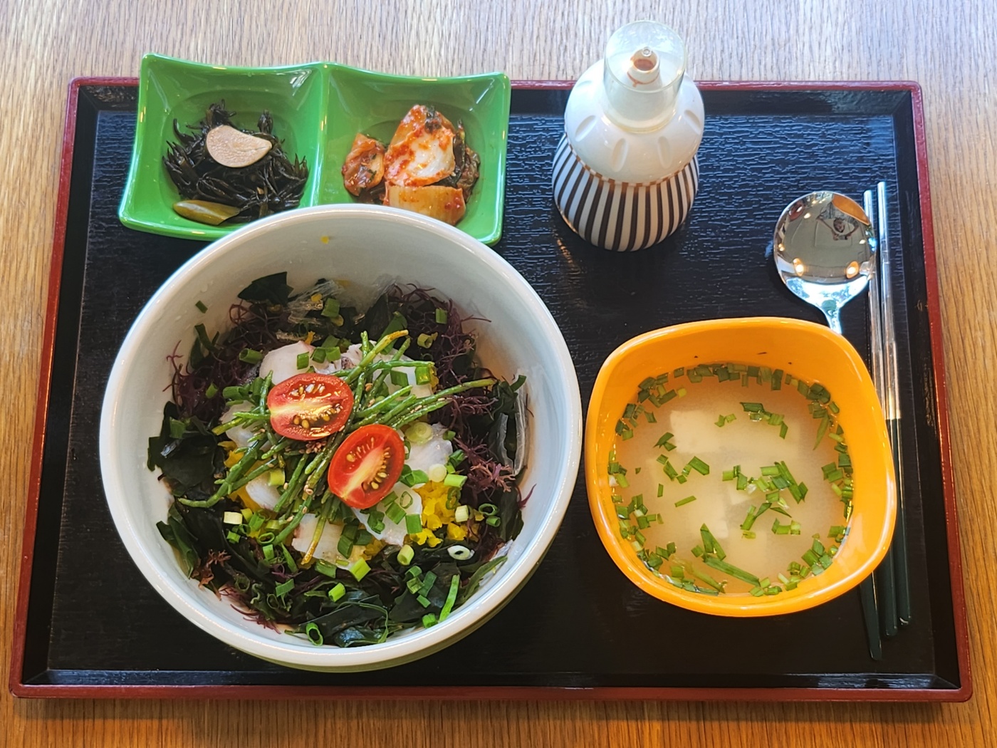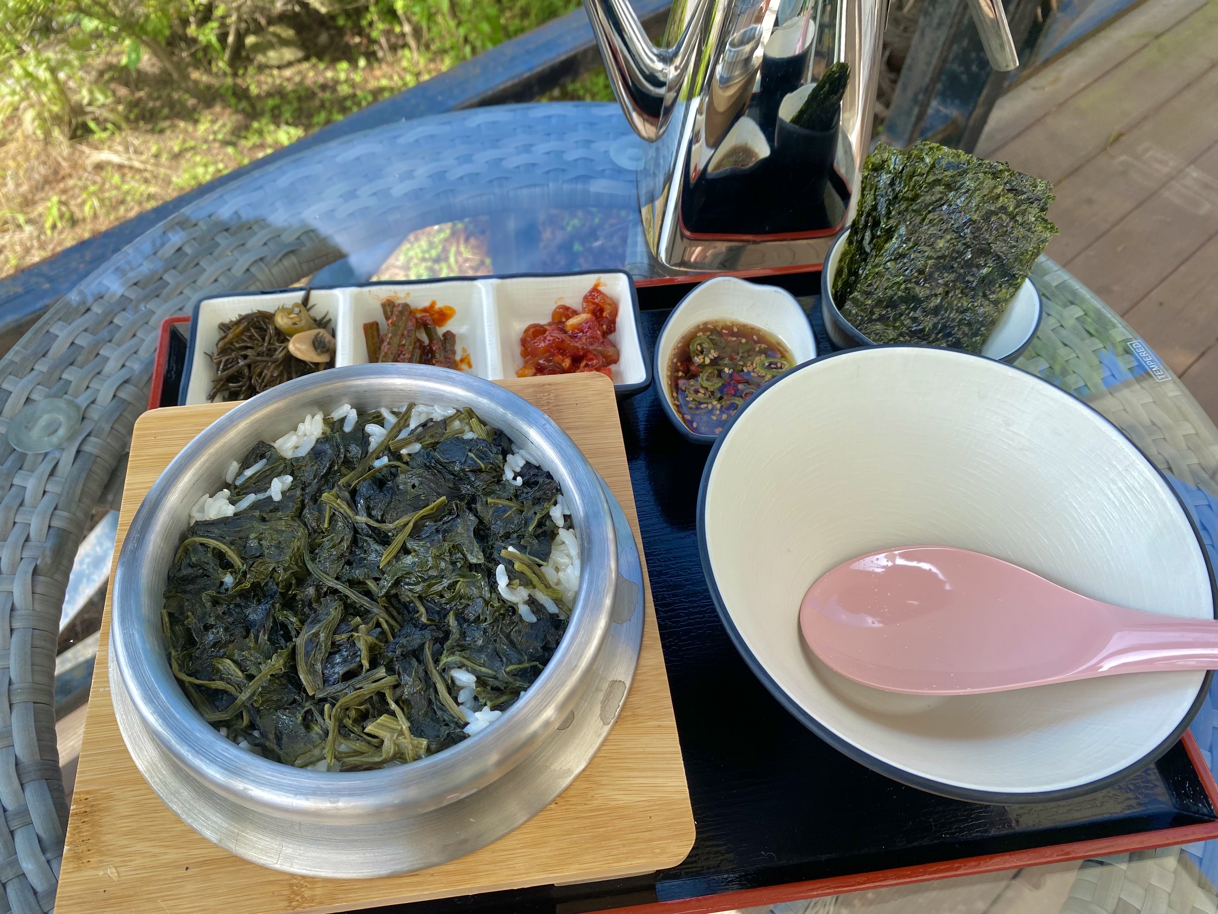 wg01스페셜 메뉴와 민어 돈가스 튀김이 재료 소진되어 맛을 보지 못해 아쉬웠지만 해초비빔밥과 전복솥밥은 정갈하면서도 영양가 넘치는 비쥬얼과 맛이었어요. 깔끔한 내부 인테리어와 확 트인 전망도 좋았네요