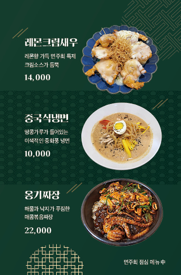 투혁47면주회~중국요라 전문점으로 깔끔한 인테리어에 기분좋게 입장하였습니다 착한 안주 가격에 4명에서 바로 안주를 인당 1메뉴 고고씽하고 하얀 단무지와 짜샤이 먼저 맛보자 마자 아! 이집은 다루구나 바로 느꼈습니다. 술도 소주로는 감당할수 없겠다 판단하여 공부가주로 턴~ 같이 온 자인들도 만족한다는 칭찬에 간만에 기분이가 업이 되었습니다!! 다들오셔서 맛보시고 좋은시간 보내셨음 합니다~ 면주회 짱입니다요!ㅋ