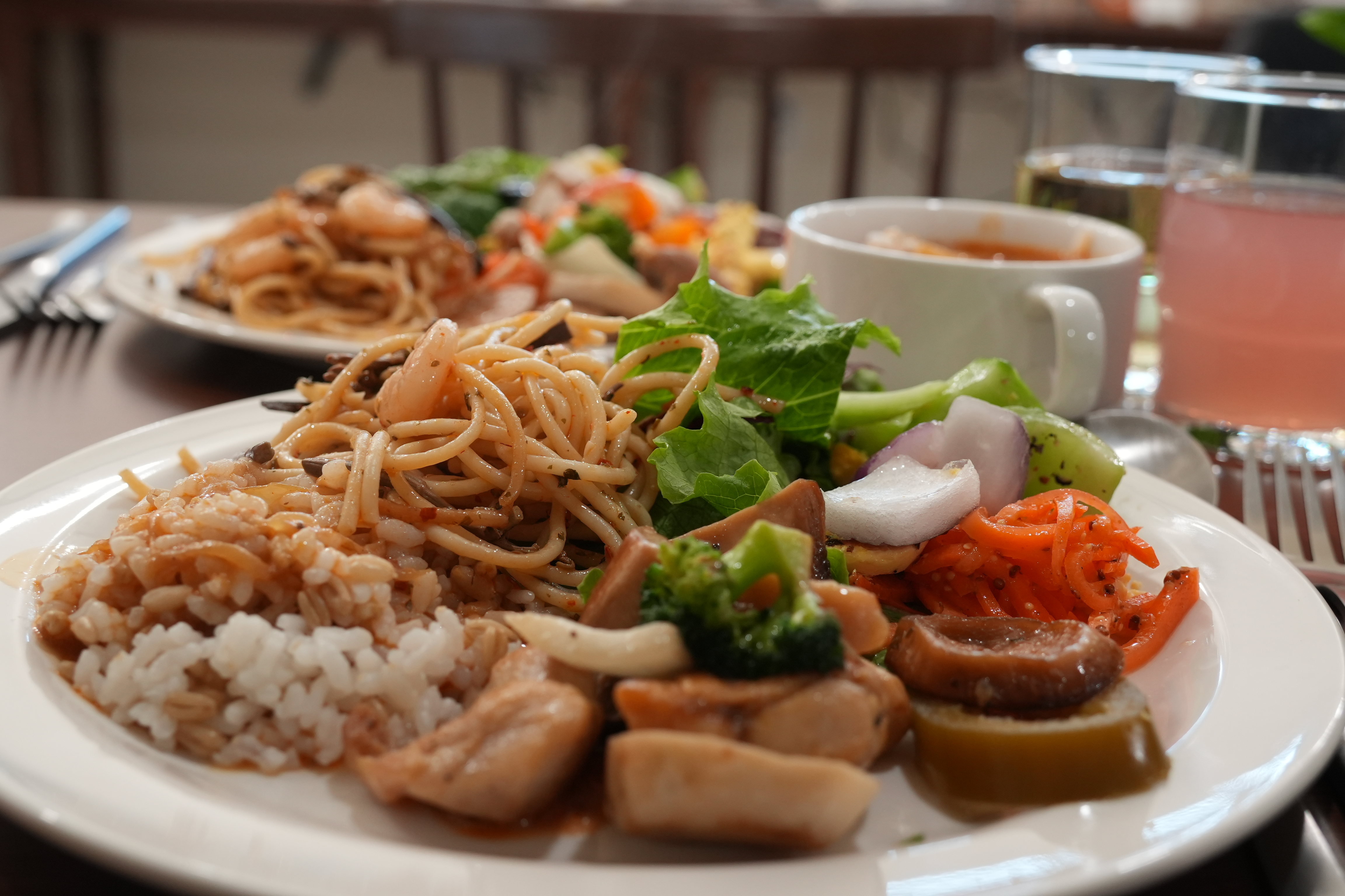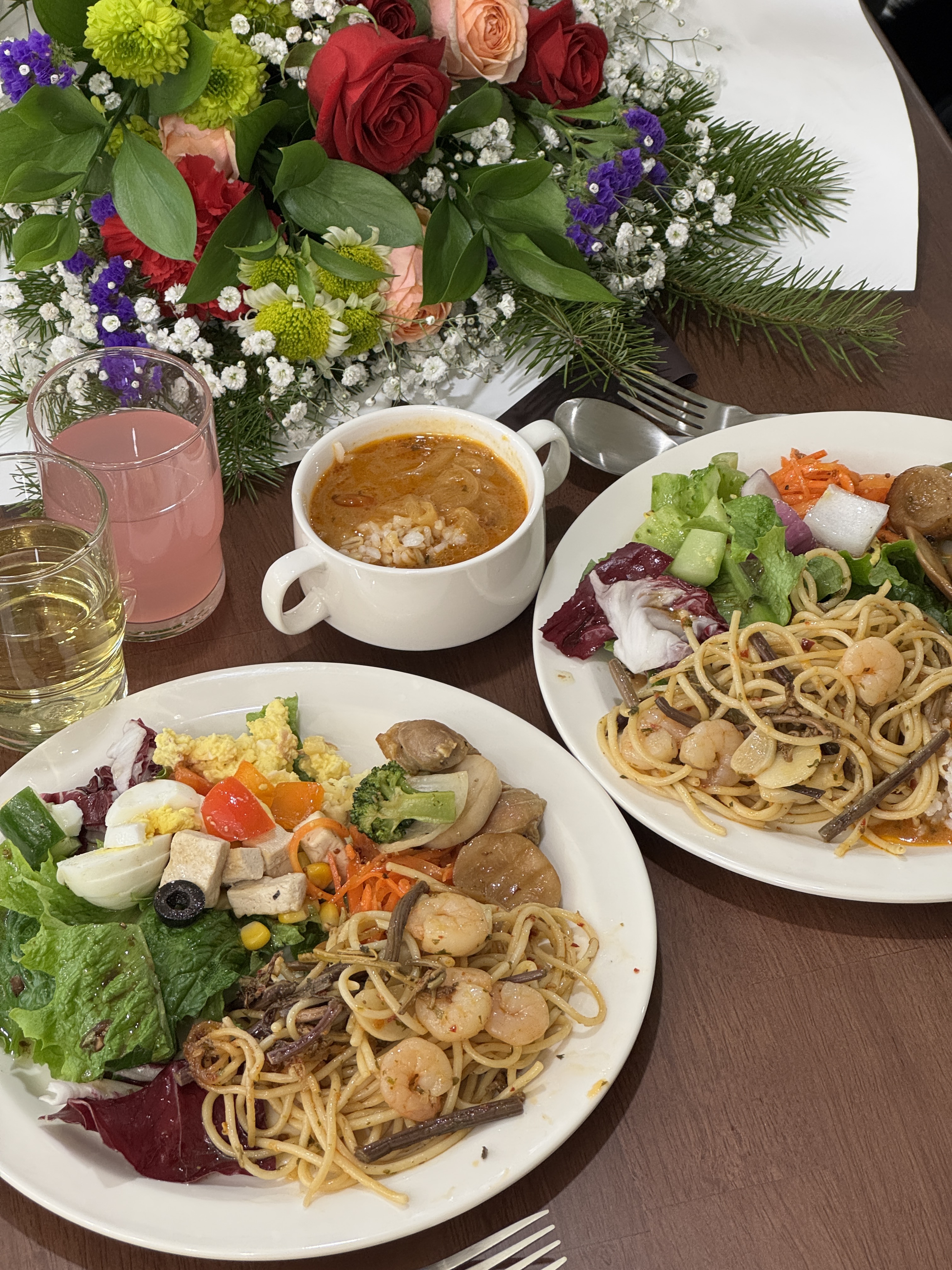 루시아6969어디 유럽 외국에 잠시 온 기분이에요. 사실 처음엔 메뉴가 너무 적어서 망설였는데요. 대여섯가지 되는 다양한 샐러드랑 맛있는 메인요리 두개(파스타, 볶음밥과 제육) 하나하나가 진짜 정성들어간 맛집이어서 정말 좋았어요. 다른 뷔페에선 대충 데운 음식을 너무 많이 먹었었거든요. 무엇보다 놀란건 크림치즈 종류가 세가지나 되고 빵에 포카치아까지 있었다는거에요 ㅠㅠㅠ엉엉♡ 크림치즈를 좋아하는 저는 진짜 감동했어요. 음료는 사과주스가 있고, 나모지는 우엉차, 따뜻한 보리차, 커피 이렇게 있어요. 식후에 부담없이 가볍게 즐기기 좋아요. 사진 중간에는 디저트도 있는데, 일인당 한개씩 주는 것 같아요. 파인다이닝 온줄 알았다니까요. 담에 또 올게요 (참고 : 리뷰선물 이런거 없이 찐으로 감동받아서 쓴 리뷰)