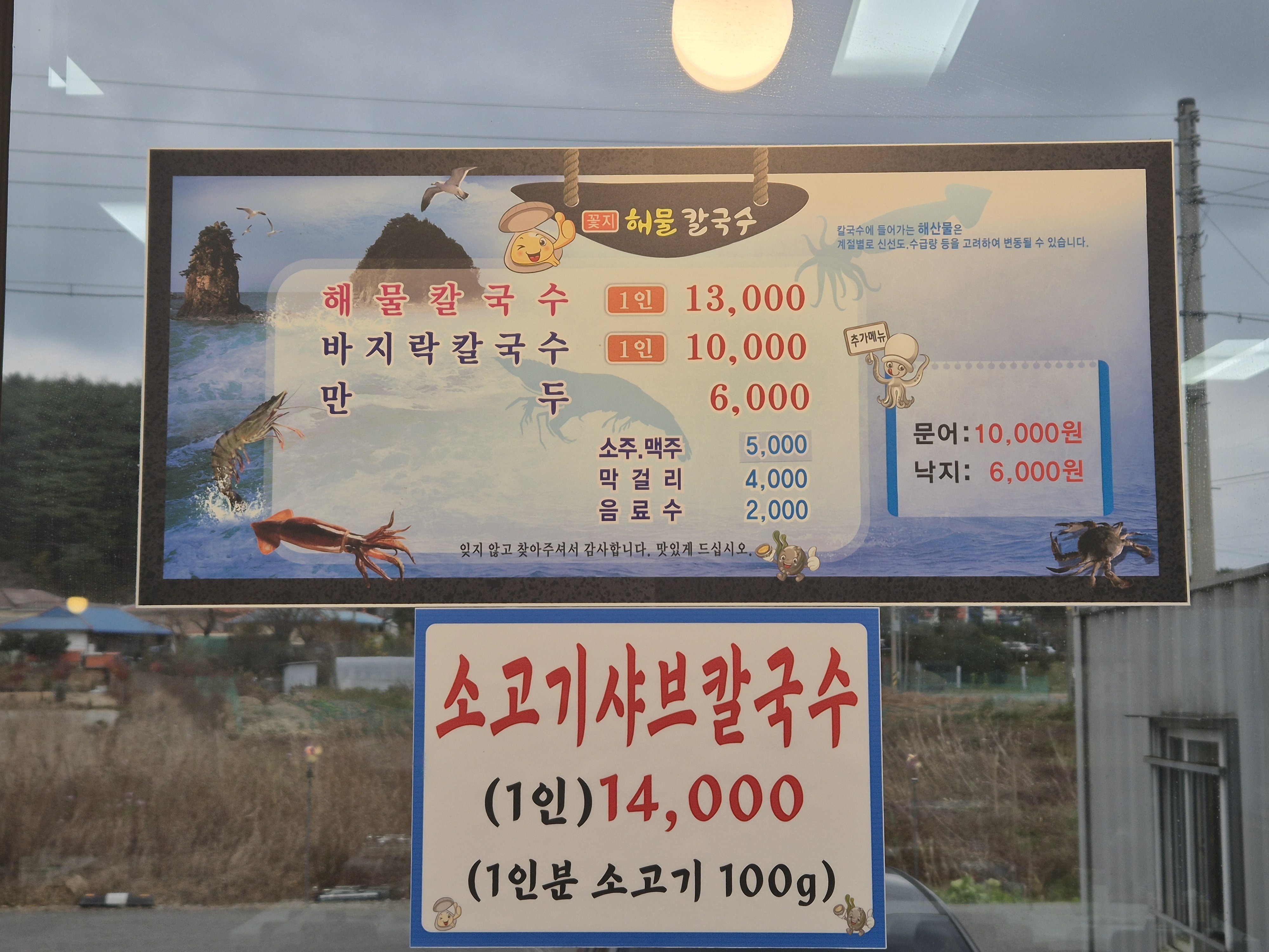 - 소고기샤브칼국수 14,000원