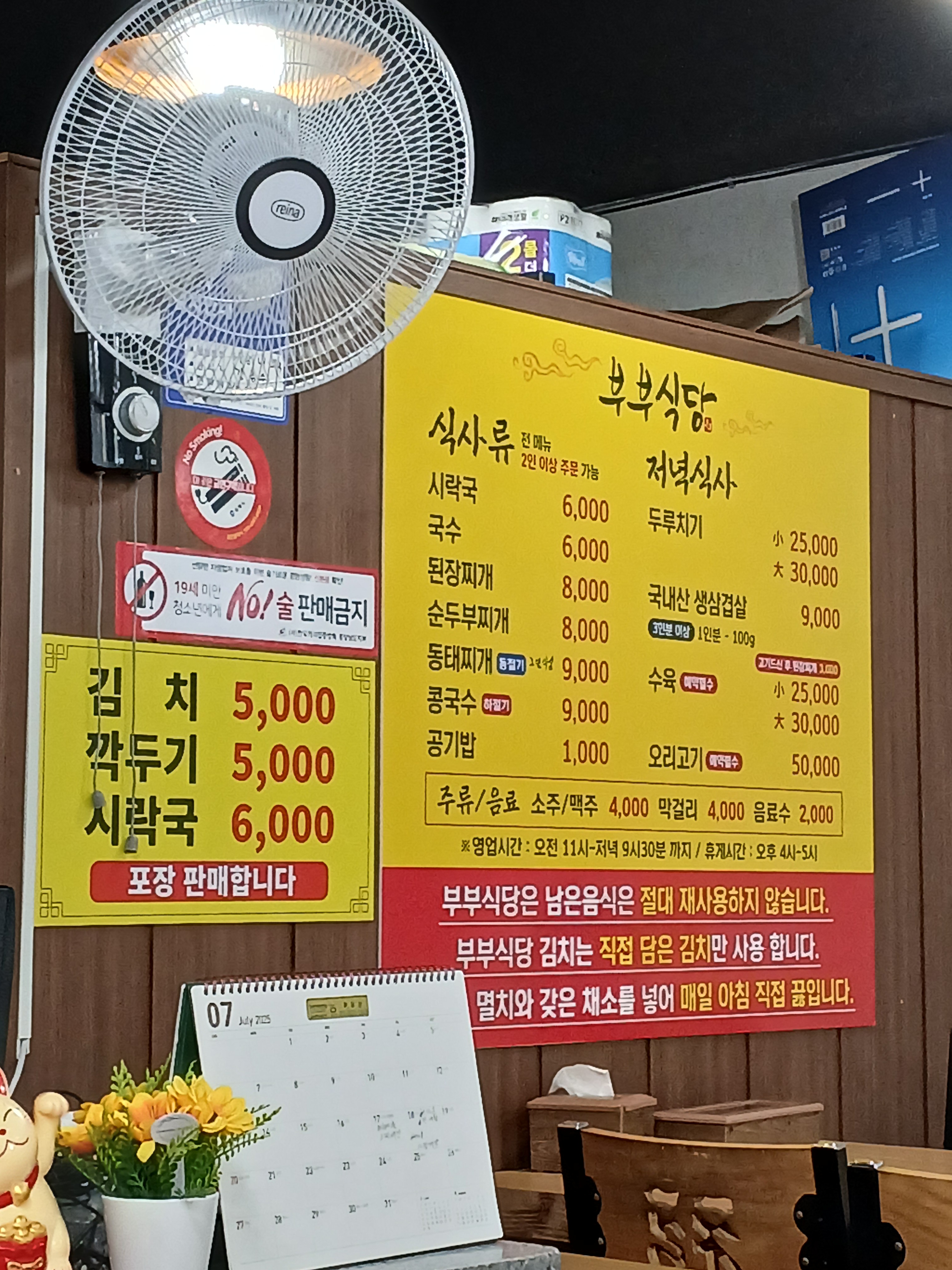- 국수 7,000원