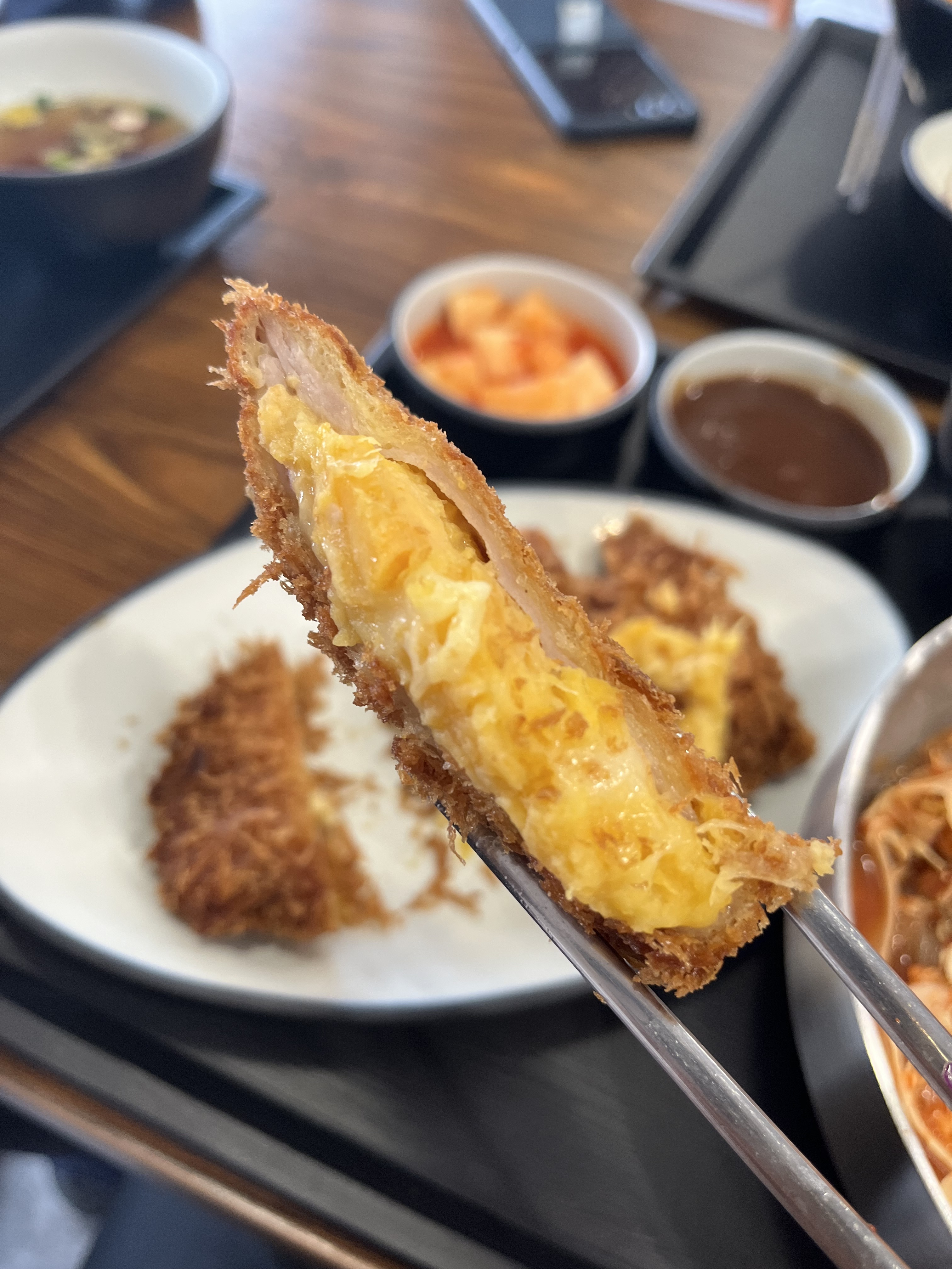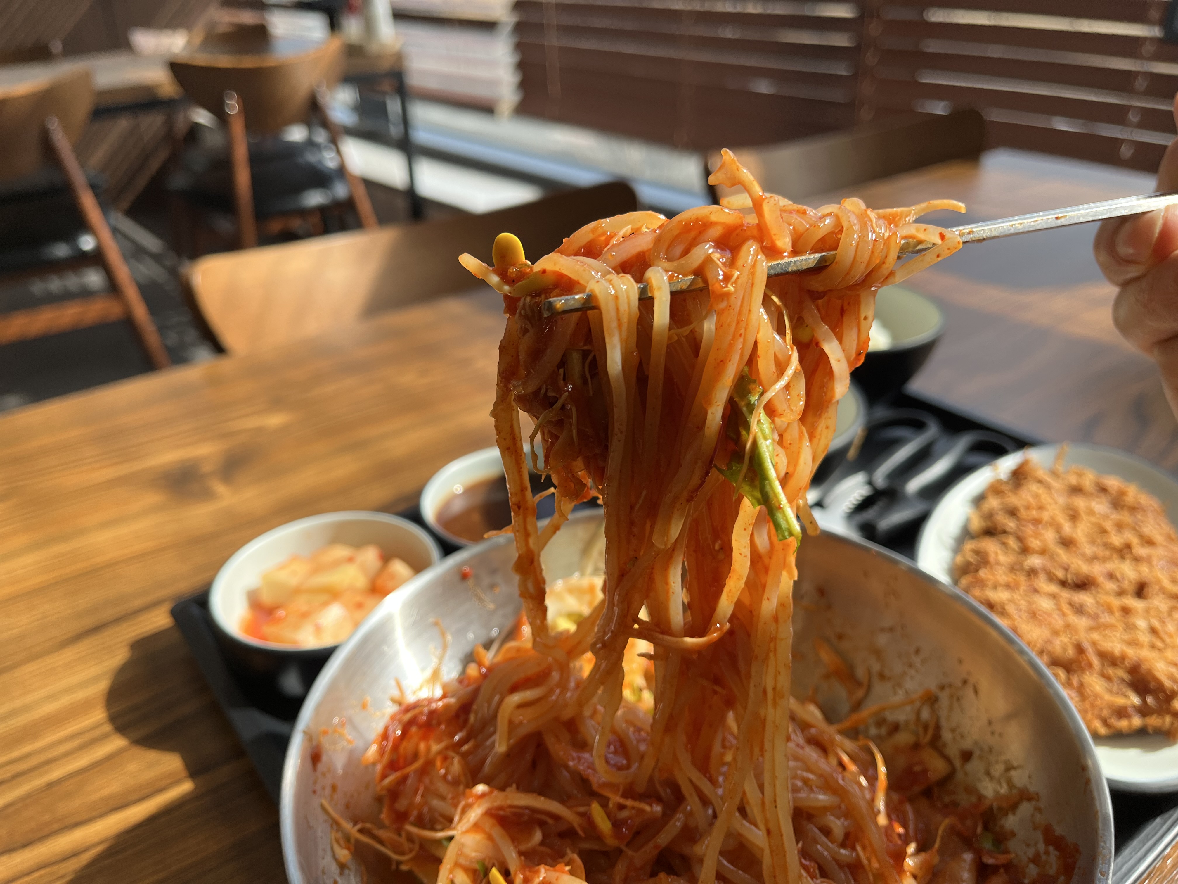 예감츄가격이 너무너무 가성비 + 후기도 좋아서 왔다가 냉면말고 다른메뉴 많은거보고 또 눈돌아갔어요... 저는 청양크림우동세트(계절메뉴) 시키고 제 짝꿍은 쫄면세트로 시켰는데 일단 크림우동 좋아하면 무조건 드세요.ㅠㅠㅠㅠ 리뷰쓰면서도 너무 맛있었던 기억때문에 우는중🥲 일단 크림우동 너~~~~무 맛있구요 ❤️ 저는 고구마치즈돈가스로 변경해서 먹었는데 와... 고구마가 일단 고구마무스가 아니라서 살이 덜찔것같은!!!!! (가스라이팅 아닙니다) 너무바삭하고 고소한 맛이에요🔥 그냥 기본 돈가스도 ㅠㅠ 빠삭하고 부드럽구요... 그리고 쫄면 좋아하시면 그냥 의심하지말고 일단 드세요. 메밀소바? 묻지마세요. 그냥 드셔보세요.. 가격도 착한데 음식도 맛있어서 저 이제 x소야 안가고 여기만 올거에요!! 배터져버림 ,,, 😩👍🏻