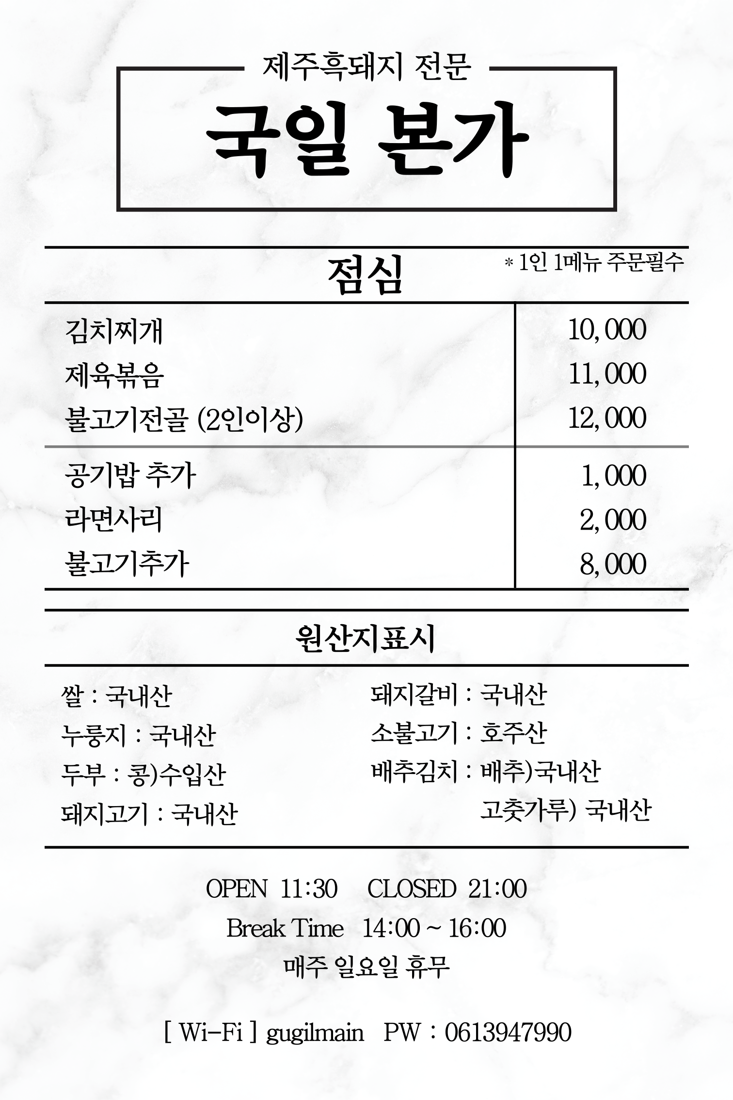- (점심) 제육볶음 11,000원