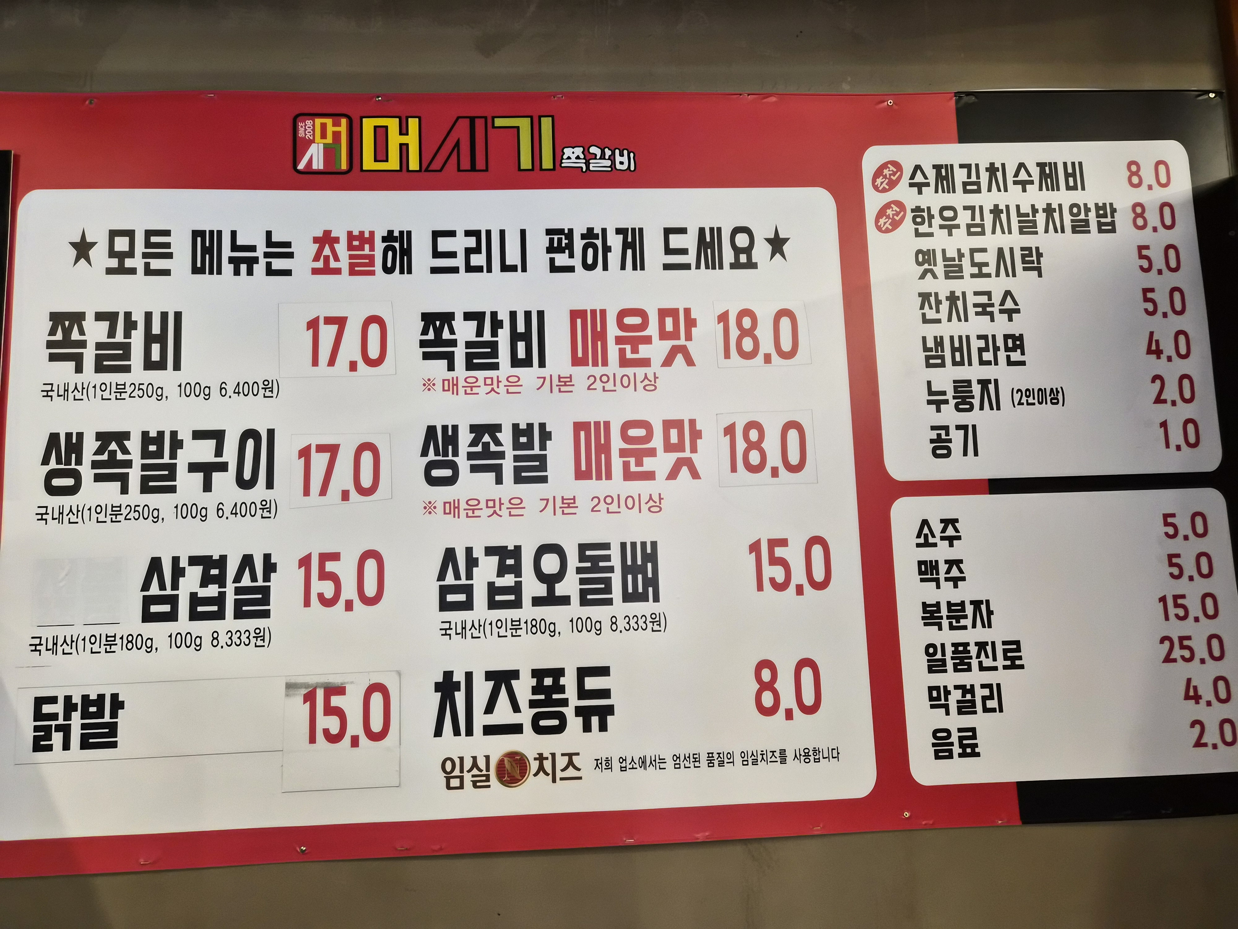 - 쪽갈비 매운맛 18,000원