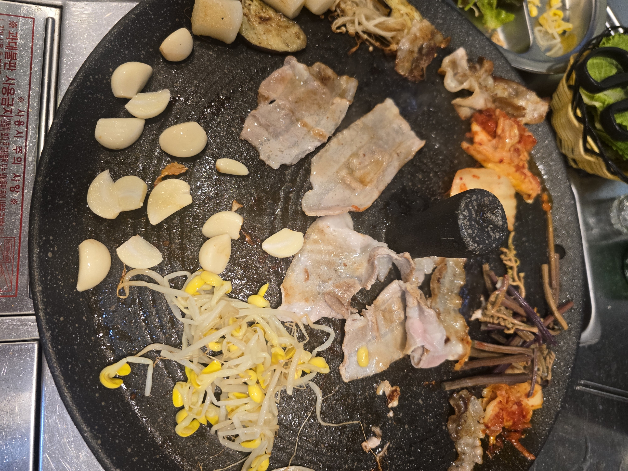 깜둥포메 다나🥩 '흑돼지 대패 삼겹' 느무 맛있어요 😋 일반 대패와는 한 끗 🎴 다른 퀄리티 👍 야채도 신선, 고기도 신선, 김치도 핵맛 😍 솥뚜껑에 먹는 삼겹은 말.해.뭐.해 차돌된찌로 마무리 🥘 강추에용 밥도 쫜득 포실포실 그냥 맛집인듯