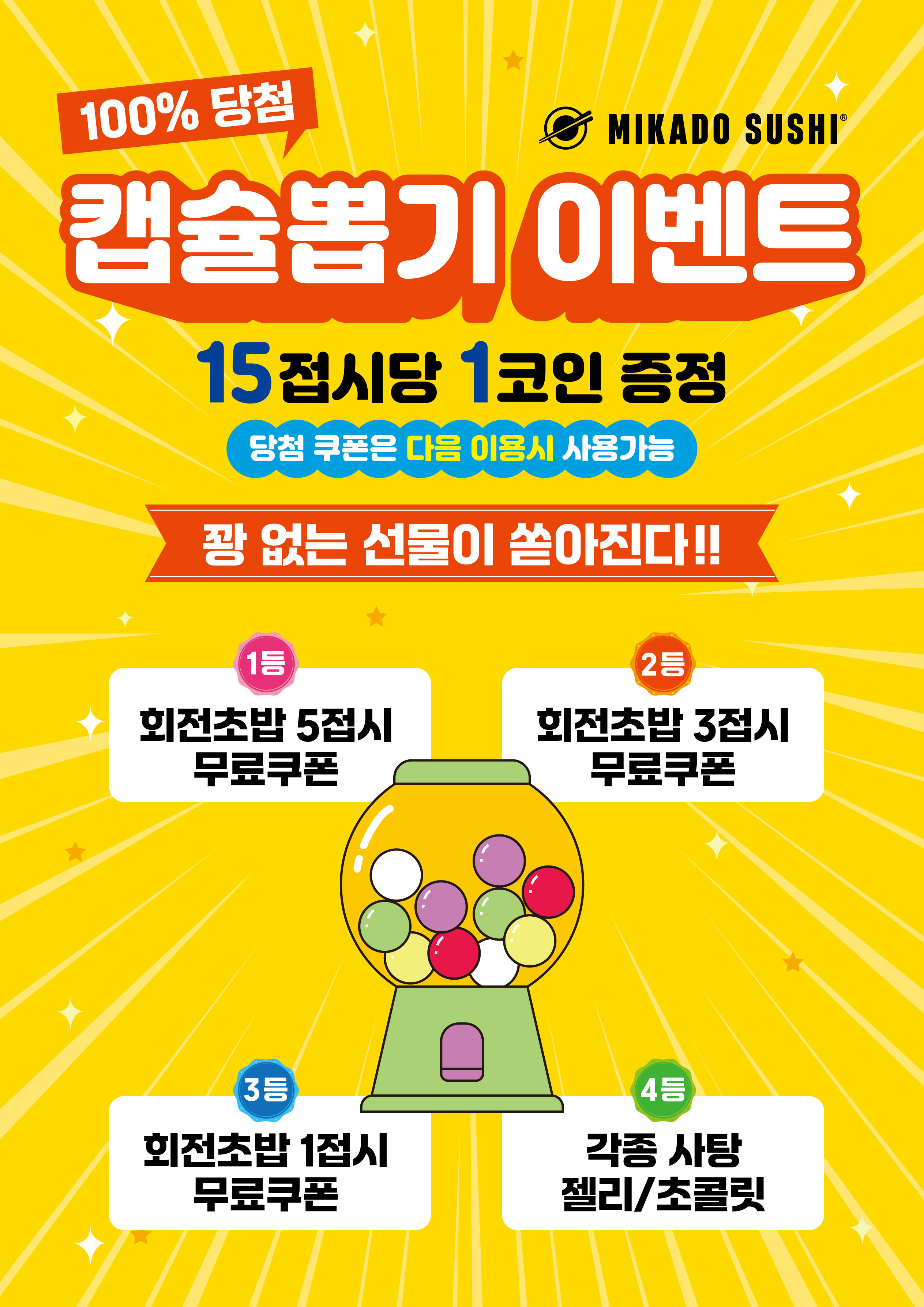 그럭저럭이런저런회전초밥 먹고 싶어서 방문한 미카도스시🍣 매장 들어가자마자 깔끔하고 넓은 분위기라서 편하게 식사하기 좋았어요. 레일 위에 다양한 초밥들이 계속 돌아가는데 종류가 생각보다 많아서 고르는 재미가 있었고, 없는 메뉴는 따로 주문도 가능해서 좋았습니다. 전체적으로 재료 신선도 괜찮았고, 간도 무난해서 부담 없이 먹기 좋았어요.