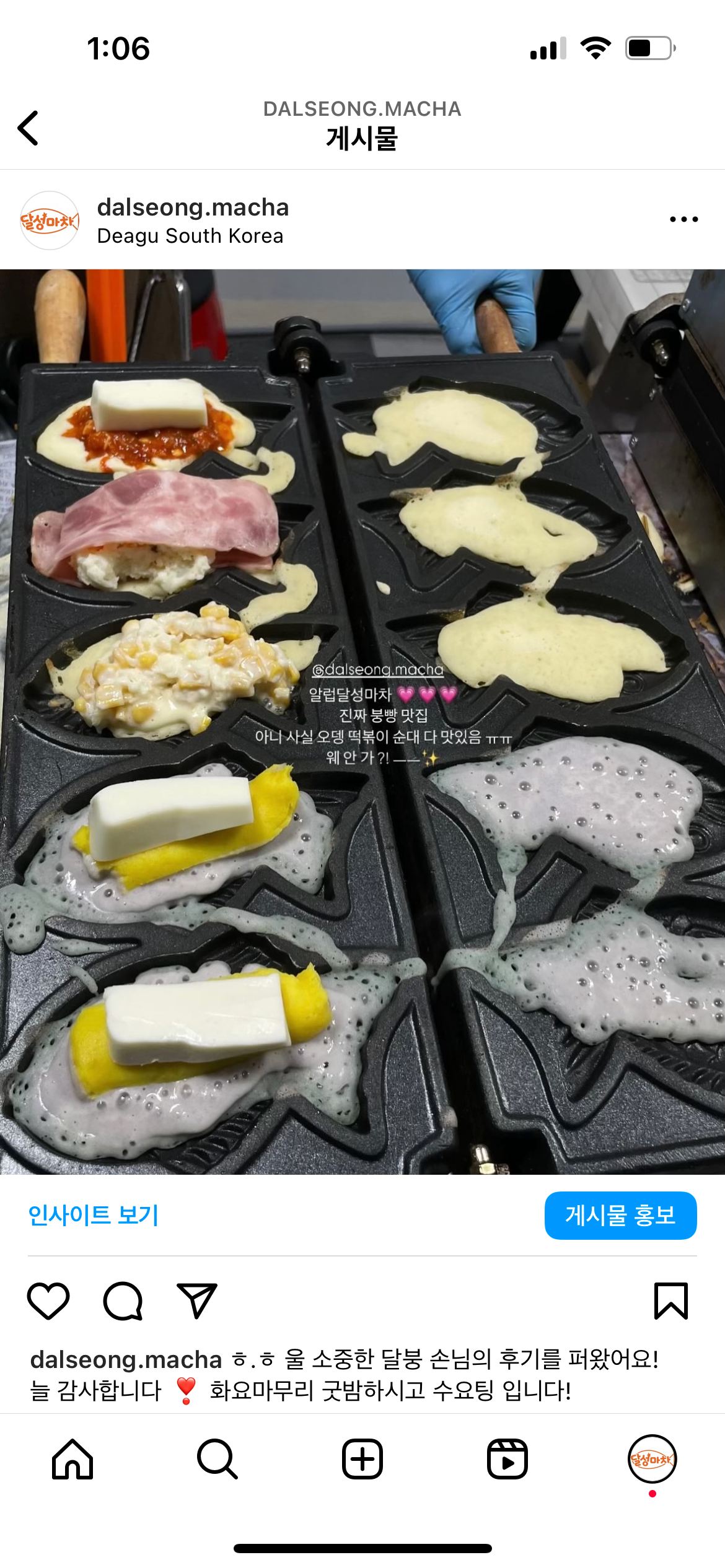tjd****달성공원 방문 후 포장해서 왔는데 완전 넘 맛있어여 ㅡ! 떡볶이 시장에서 파는 그느낌인데 매콤하고 꼬마김밥 안매운건 아이가 너무 맛있게 잘먹었구요 매운건 꼬추랑멸치양념이 들어가서 매운데 계속 땡기더라구요! 붕어빵 바삭하고 속도 가득알차서 너무 맛있어요 날 풀리면 다음에는 포장해서 달성공원에서 먹어보려구요><