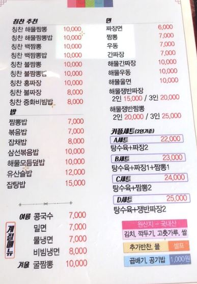- 칭찬해물짬뽕 11,000원
