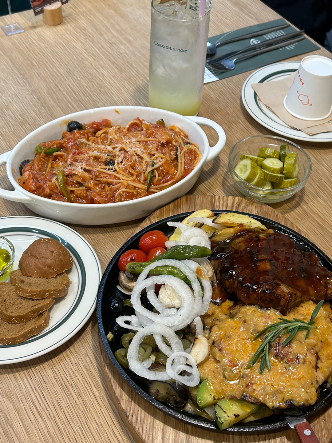 gaiver1대구역 맛집 캐서롤앤모어 롯백대구점 오픈형 매장으로 규모가 상당히 크고, 아이보리 톤의 벽돌 패턴 외관으로 차분하면서 세련미가 돋보입니다. 직원분들이 친절하게 대해주시는 매장입니다. 내부도 벽돌 패턴과 우드톤으로 인테리어 해 모던하면서 트랜디한 공간입니다. 프라이빗한 세미나실이 있어 이벤트나 각종 단체모임 갖기에도 좋아요. 시저샐러드는 바삭한 크루통과 드레싱의 고소한 맛과함께 상큼한 맛이 조화롭습니다. 돈마호크는 쫄깃한 식감으로 씹는 맛이 즐겁고 고기의 깊은 풍미가 일품입니다. 트러플카사레치아 파스타는 양송이, 케일, 홍합 등이 조화로운 파스타로 카사레치아 면의 씹는 맛이 살아있고, 트러플의 풍미와 해산물의 매력적인 맛이 좋아요. 캐서롤앤모어 롯백대구점은 분위기 있고 맛도 좋아 가족 모임 장소로 굿이에요.