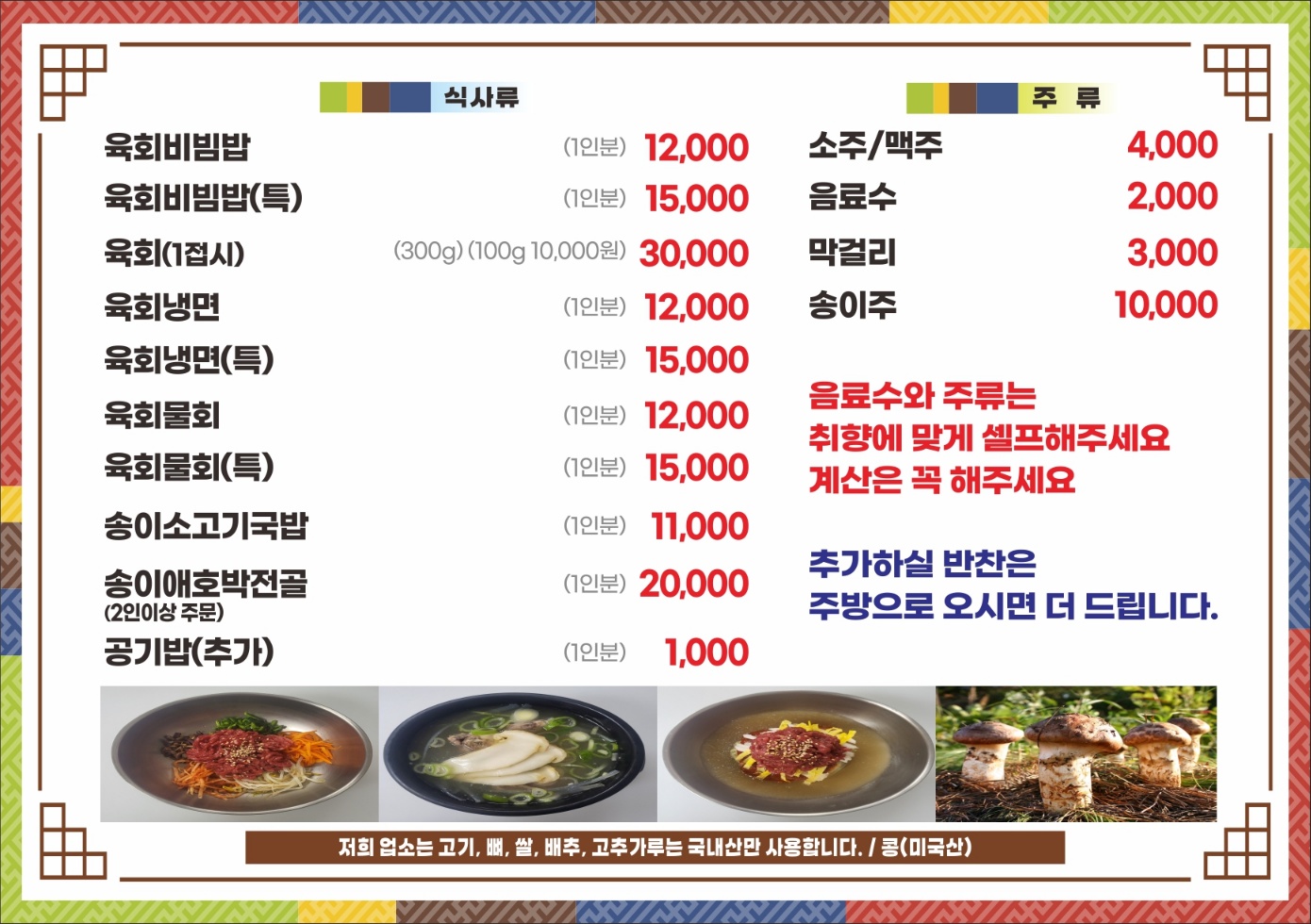 - 육회 30,000원