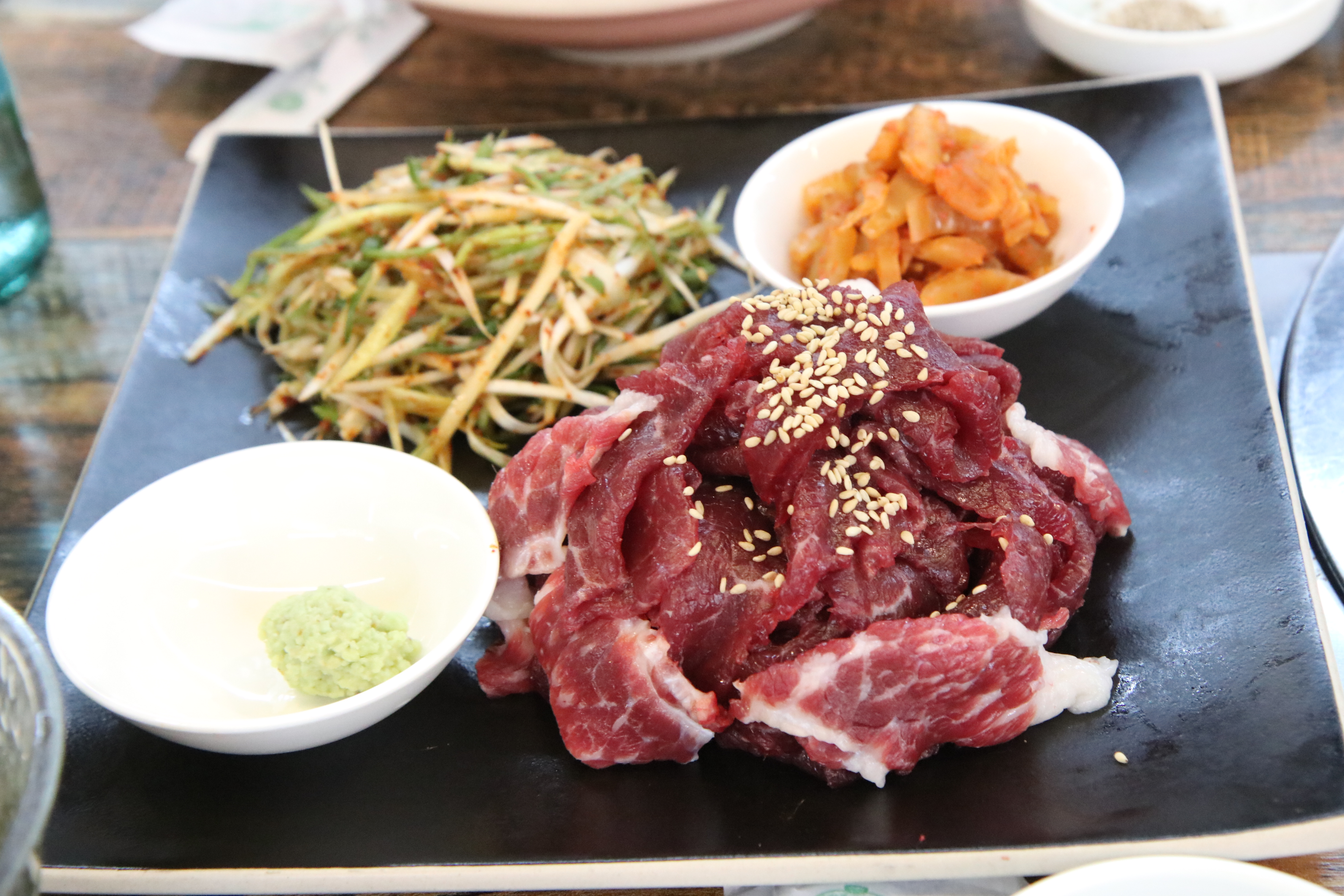 • 한우육회낙지탕탕이(전날 예약필요) 73,000원