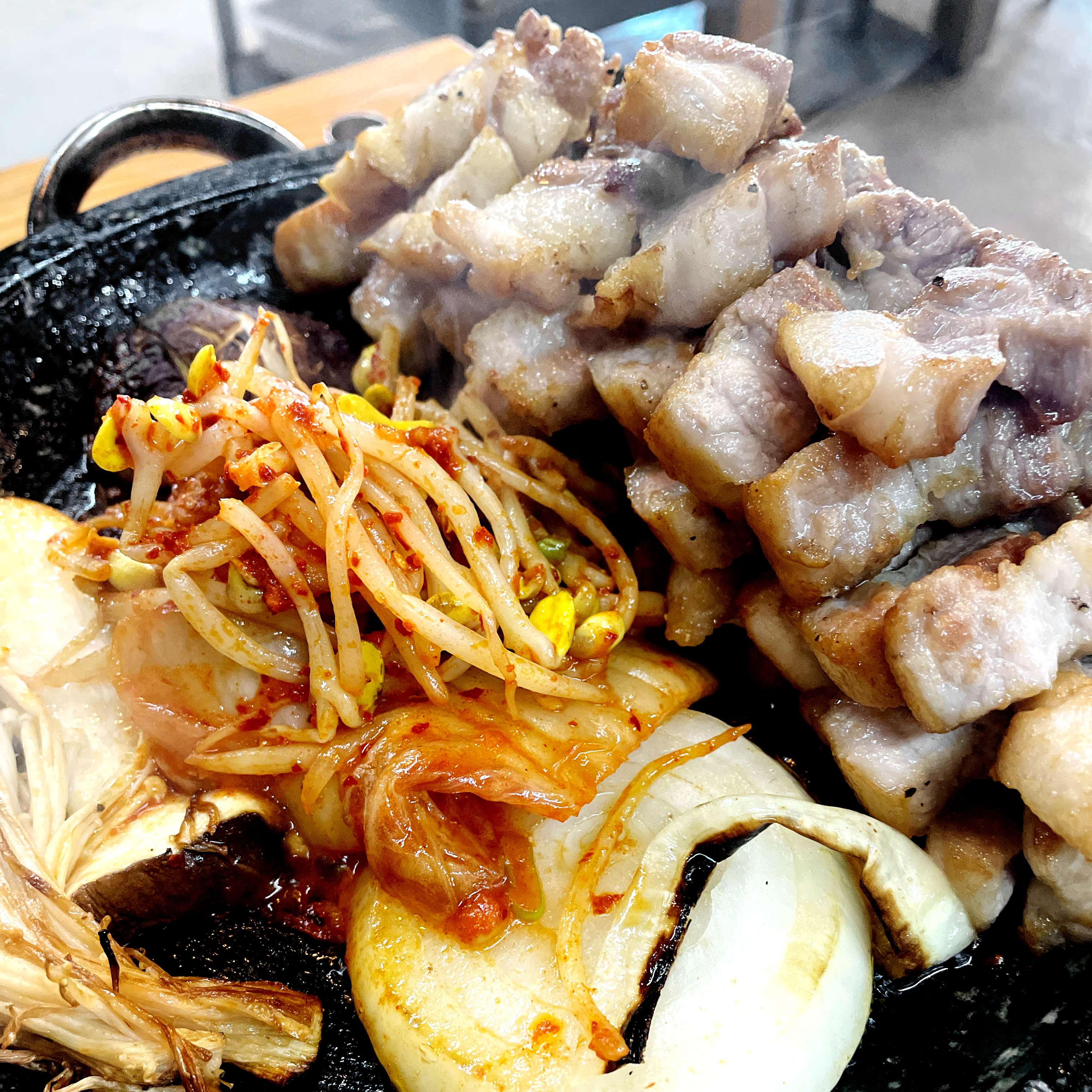 비지콩콩왜 이제야 알았을까요!!!! 구워주는 삼겹살 맛집 !!!! 집밥느낌에 정갈한 반찬들과 따뜻한 밥한그릇😭 보통 은그릇에 한공기주는데 이곳은 정말 집에서 엄마가 차려주는 한상처럼 예쁜 그릇에 밥을 담아서 주시는데 제일 감동,,, 맛은 말해뭐해 최고등급한돈쓰신다던데 진짜 최고입니다👍🏻 다먹을때까지 뜨뜻하게 지글지글 먹을 수 있는 돌판삼겹살맛집!!!!!!!!