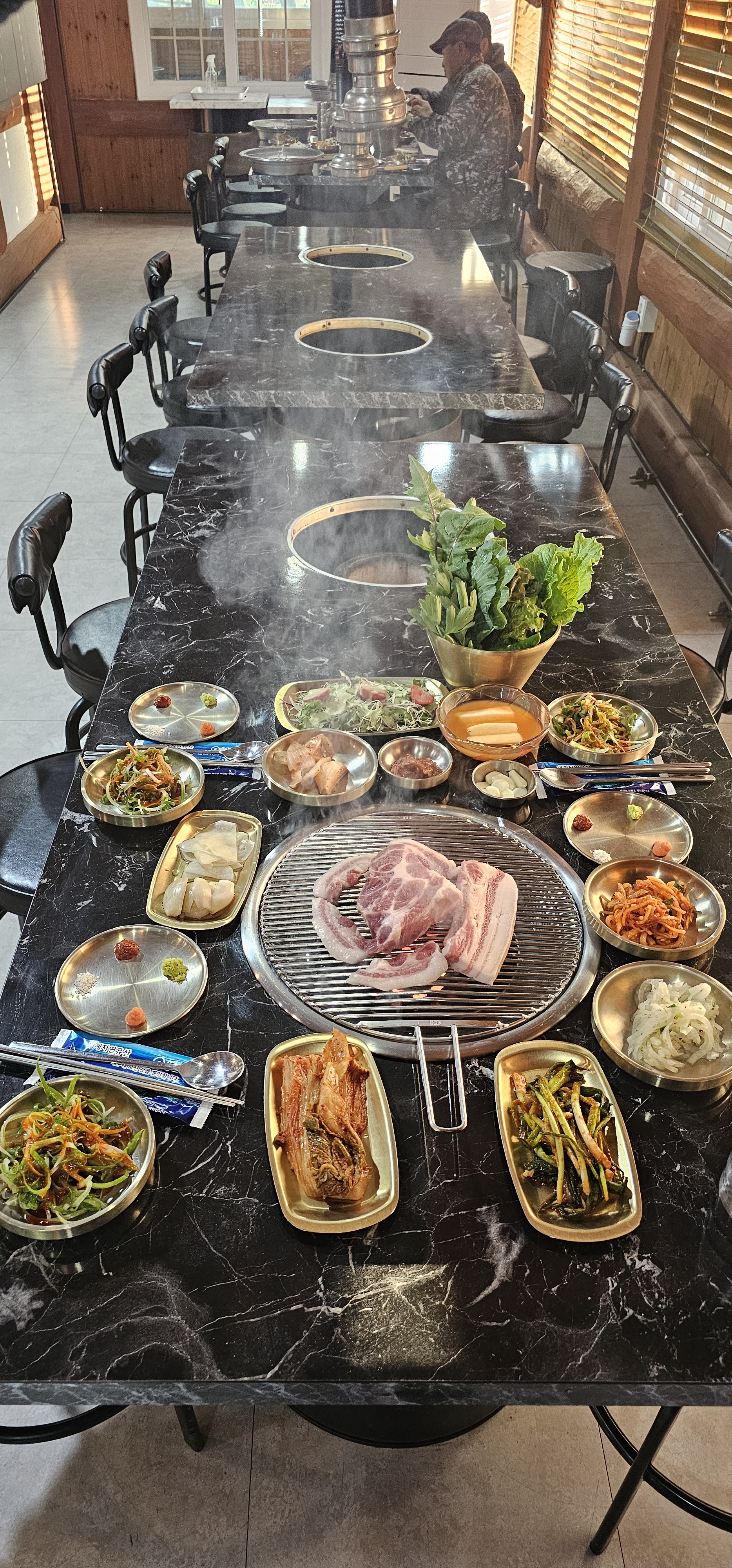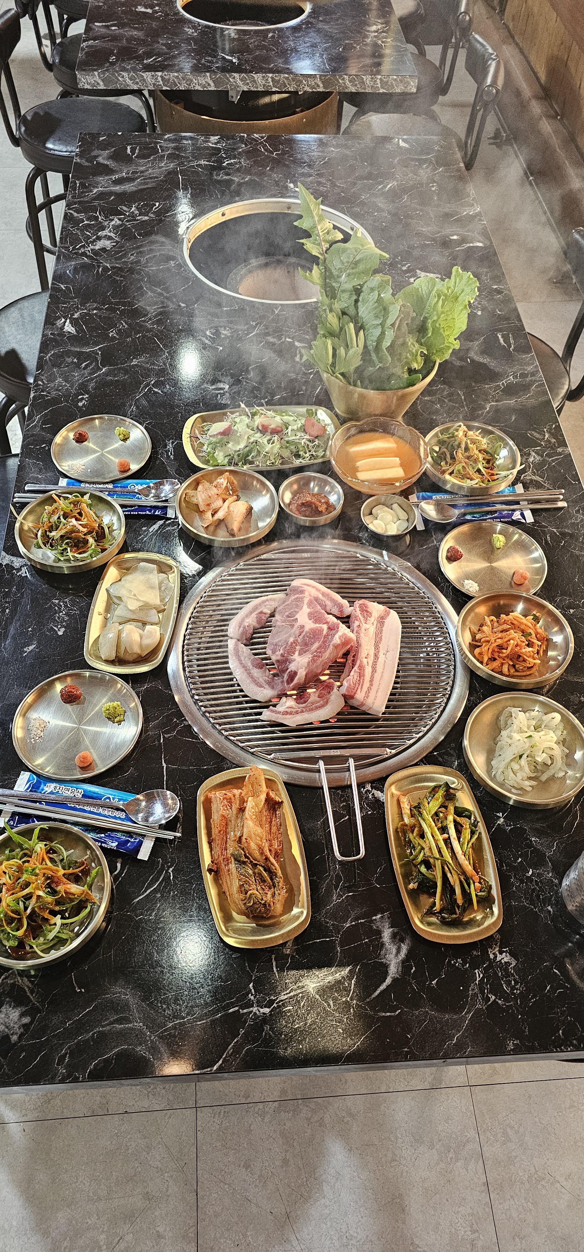 요망진여행가돈사돈 한림협재점은 정말 대단했어요. 제주 흑돼지 연탄구이를 혼밥으로 먹을 수 있을 뿐만 아니라, 신선한 고기의 맛을 제대로 느낄 수 있도록, 사장님과 스태프님이 직접 구워줬으니까요. 그리고 혼밥을 위해 가게를 방문한 경우. 근고기 400g의 메뉴를 주문할 수 있었습니다. 이 부분이 정말로 좋았어요. 400g의 고기라면 아주 든든히 먹을 수 있으면서, 가격 역시 합리적이니까요. 양과 크기도 엄청났습니다. 400g의 양이 이렇게나 많을 수 있나! 라는 생각이 들 정도로 압도적인 비주얼과 퀄리티였거든요. 신선함 역시 대단했고요. 고기의 맛도 너무 훌륭했습니다. 연탄불의 향기가 그윽하게 피어나고, 감칠맛넘치는 육즙이 팡팡터지면서 쫄깃부드럽게 씹히는데, 그때 느껴지는 풍미와 맛이 진짜 기가 막혔네요.