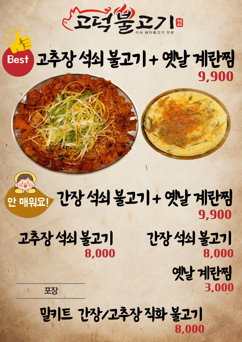 - (Best)고추장석쇠불고기+옛날계란찜 9,900원