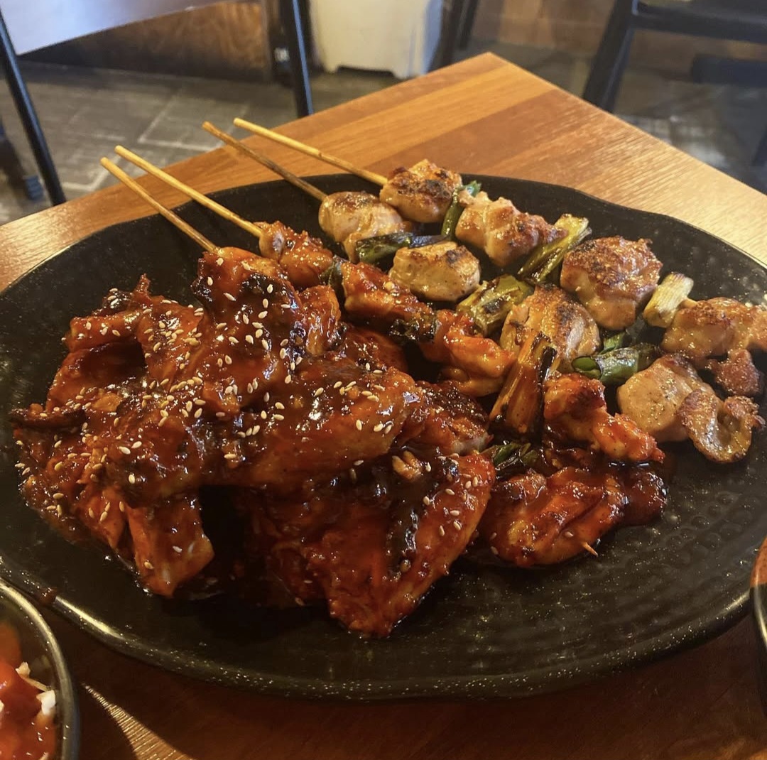 초코나무의숲[상도동 / 고가네숯불구이통닭] 같은 동네 사는 과장님이 맛잘알이라 어디 맛있다고 하면 꼭 한번쯤 궁금해서 가보게 됨ㅋㅋㅋ 이번에도 추천받은 '고가네숯불구이통닭' 과장님 말에 의하면, 원래 노상? 포장마차같은 곳에서 팔던 닭꼬치집인데 장사가 잘 되어서 가게를 차렸고 가게도 장사가 잘되고 있어서 현재까지도 웨이팅이 있는 동네맛집이라 한다. 사실 동네라기엔 우리집에서 거의 지하철 한 정거장이라 좀 거리가 있고, 신대방삼거리역과 장승배기역 사이 딱 중간쯤에 있어서 마음을 좀 먹고 가야했다. ㅋㅋㅋ 영업시간 PM 4:00 ~ AM 12:00 매주 일요일 정기휴무 고가네숯불구이통닭 방송에서도 소개한적이 있는 곳인데 그... 최근에는 좀 문제가 됐던 그 분의 추천 맛집이다 ㅎㅎ 그치만 문제 포인트가 맛집평가부분은 아니였으니 ㄱㅊㄱㅊ 이번에도 운좋은 우리는 마지막 테이블을 차지했다 내부에 들어서니 먹방유튜버 입짧은햇님 싸인도 있었다. 안쪽은 우드 인테리어로 옛날 호프집 감성이고 좌석은 한 10테이블 정도 있었던 것 같다. 메뉴판은 굉장히 심플 했는데 메인메뉴는 통닭과 닭꼬치로 나누어져 있었다 숯불 통닭은 소금 / 양념 / 매운양념 / 반반 이렇게 4가지가 있었고 닭꼬치는 소금 / 양념 / 매운양념 3가지 종류로 나누어져 있었다. 우리는 숯불 통닭과 닭 꼬치를 모두 즐길 수 있는 고가네 세트를 골랐다. 밑반찬으로는 케찹이 뿌려진 양배추 샐러드와 치킨무를 가져다 주셨다 일반적으로 양배추 샐러드에는 케 요네즈가 뿌려지는데 여기는 케찹만 뿌려져 있는 게 특이했다. 치킨을 편하게 뜯어 먹을 수 있도록 집게와 포크도 같이 준비해 주셨다. 대부분의 테이블이 술을 마시고 있었는데 우리는 술을 별로 좋아하지 않아서 제로 콜라를 시켰다 메뉴를 시킨이 기본으로 오뎅탕 국물이 나왔는데 어묵이 소소하게 들어 있는점이 좋았다 그리고 굉장히 후추맛이 강하고 칼칼해서 맛있었다 계속 마시게 되는 중독성 있는 국물맛 메뉴를 시키면 직접 숯불로 구워 주셔서 시간이 조금 소요되는데 한 10~15분 정도 기다리니 우리가 주문한 고가네 세트가 도착했다 구성은 양념숯불통닭 반마리와 양념&소금 2개씩 생각보다 닭꼬치의 닭 크기가 크고 통통에서 먹는 맛이 있었고 중간중간에 있는 파가 구워져서 달달하고 맛있었다 닭 잡내없고, 퍽퍽하지 않아서 좋았다. 기본 양념 소스는 맵지 않았고 소금구이도 맛있지만 양념이 더 내 취향이었다. 남자친구는 매운 양념이었으면 더 좋았겠다라고 했다 숯불 통닭과 닭 꼬치에 양념이...