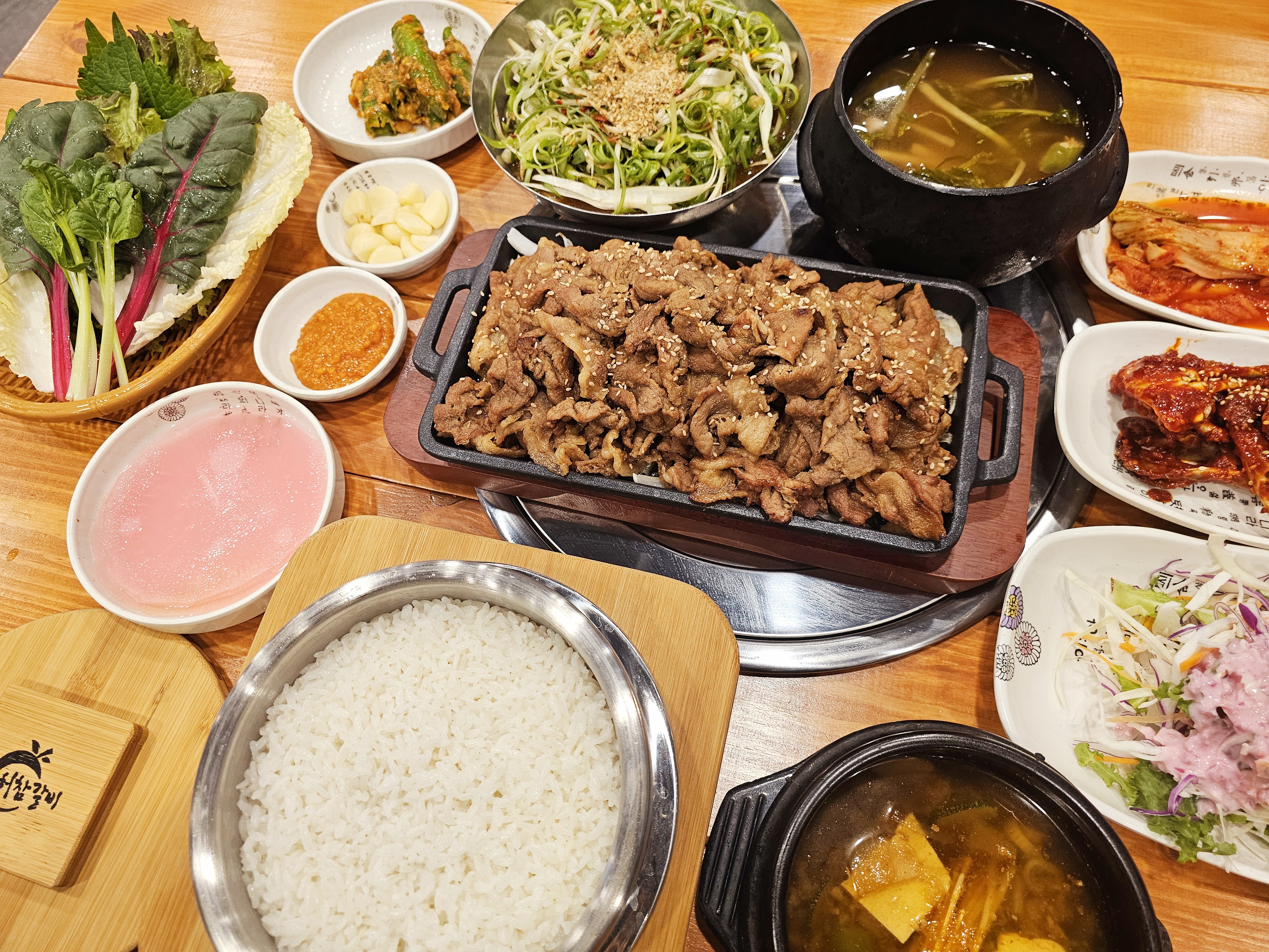 선물yj친한 지인들이 별내에 괜찮은 갈비집이 있다고 해서 서울이랑도 가깝고 해서 신랑이랑 첫 방문해봤는데 잘 간 것 같네요 🥰 고기 양념이 과하지 않고 달짝지근해서 계속 손이 가는 맛이었어요 😋 불판에 올리면 불향도 잘 살아나고 고기 질도 괜찮은 편이라 만족스럽게 먹었습니다 다만 연기 흡입이 약한 느낌이어서 고기 굽다 보니 연기가 많이 나서 아쉽 아쉽 그 부분만 보완되면 더 좋을 것 같아요 밑반찬도 깔끔하게 잘 나오고 특히 쌈채소를 원하는 만큼 가져다 먹을 수 있는 점이 마음에 들었어요 💯 흑임자 샐러드가 생각보다 맛있어서 인상적이었고요 👍 고기 + 양념 파채 + 상추 깻잎 조합으로 싸 먹으면 정말 맛있었습니다 🤤 채소도 신선해서 더 만족스러웠어요 왕갈비탕도 무난하게 먹기 좋았고 비빔냉면이랑 같이 먹으니