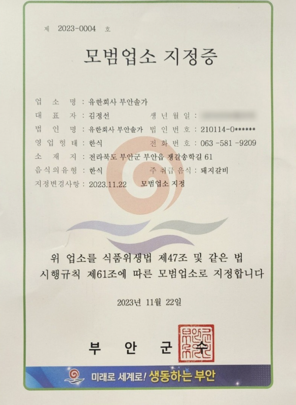 전북 부안군 부안읍 쟁갈송학길 61 1층 솔가숯불갈비 부안직영점